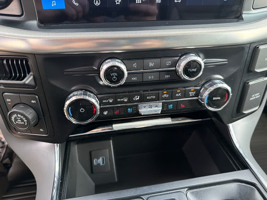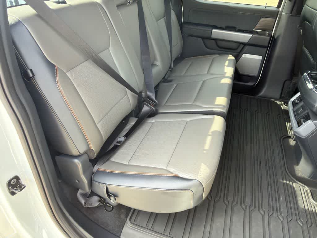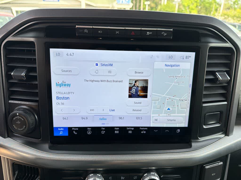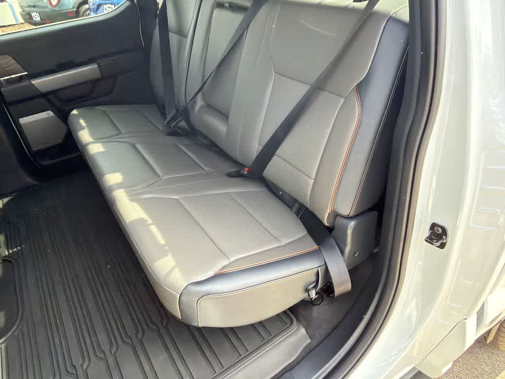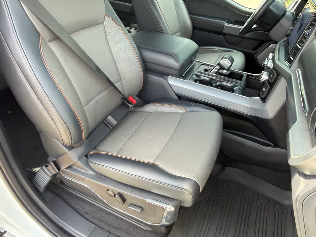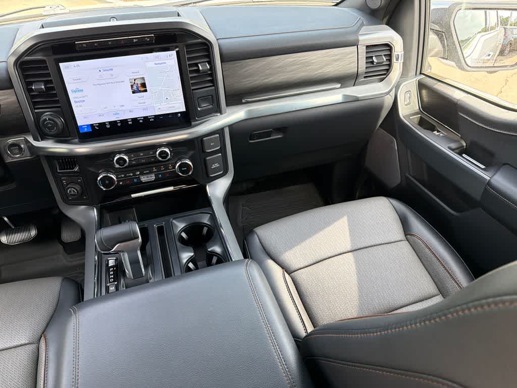 F-150 Lariat is nicely equipped with Equipment Group 501A Standard, FX4 Off-Road Package (4x4 FX4 Off-Road Bodyside Decal, Hill Descent Control, Monotube Rear Shocks, Off-Road Tuned Front Shock Absorbers, and Rock Crawl Mode), Ford Blue Certified Certified, 4WD, 4-Wheel Disc Brakes, 8 Speakers, ABS brakes, Adjustable pedals, Air Conditioning, Alloy wheels, AM/FM radio: SiriusXM with 360L, Auto High-beam Headlights, Auto-dimming door mirrors, Auto-dimming Rear-View mirror, Automatic temperature control, Brake assist, Bumpers: chrome, Chrome wheels, Compass, Delay-off headlights, Driver door bin, Driver vanity mirror, Dual front impact airbags, Dual front side impact airbags, Electronic Stability Control, Emergency communication system: SYNC 4 911 Assist, Front anti-roll bar, Front Bucket Seats, Front Center Armrest, Front dual zone A/C, Front fog lights, Front reading lights, Front wheel independent suspension, Fully automatic headlights, Garage door transmitter, Heated door mirrors, Heated front seats, Heated steering wheel, Illuminated entry, Leather-Trimmed Bucket Seats, Low tire pressure warning, Memory seat, Navigation system: Connected Navigation, Occupant sensing airbag, Outside temperature display, Overhead airbag, Overhead console, Panic alarm, Passenger door bin, Passenger vanity mirror, Pedal memory, Power door mirrors, Power driver seat, Power passenger seat, Power steering, Power windows, Radio data system, Radio: B&O Sound System by Bang & Olufsen, Rain sensing wipers, Rear reading lights, Rear seat center armrest, Rear step bumper, Rear window defroster, Remote keyless entry, Security system, Speed control, Split folding rear seat, Steering wheel mounted audio controls, SYNC 4 w/Enhanced Voice Recognition, Tachometer, Telescoping steering wheel, Tilt steering wheel, Traction control, Trip computer, Turn signal indicator mirrors, Variably intermittent wipers, Ventilated front seats, Voltmeter, and Wheels: 20 Chrome-Like PVD.