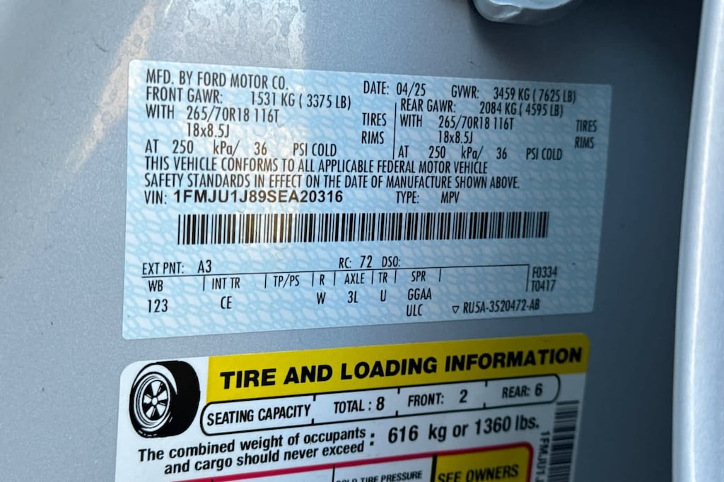 Third Row Seat, Navigation, 4x4, Power Liftgate, Rear Air, Back-Up Camera, Running Boards, Turbocharged, Satellite Radio, iPod/MP3 Input, Onboard Communications System, Trailer Hitch, Aluminum Wheels, Remote Engine Start, Dual Zone A/C. Rear Spoiler, MP3 Player, Remote Trunk Release, Keyless Entry, Privacy Glass. 2025 Ford Expedition with Space Silver exterior and Dark Gray interior features a V6 Cylinder Engine with 400 HP at 5200 RPM*. Approx. Original Base Sticker Price: $64,200*.