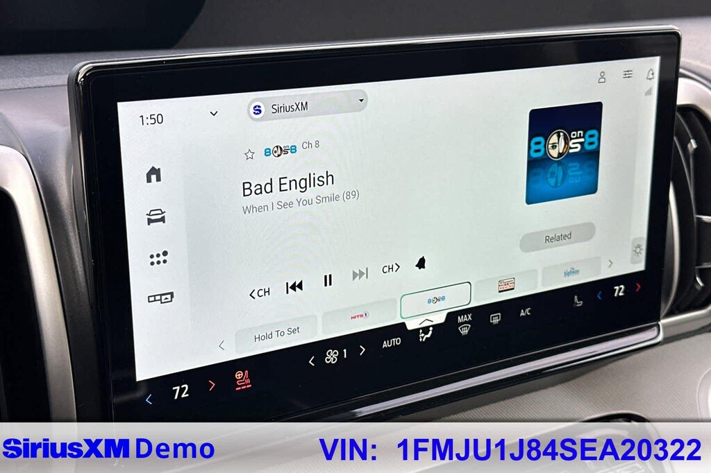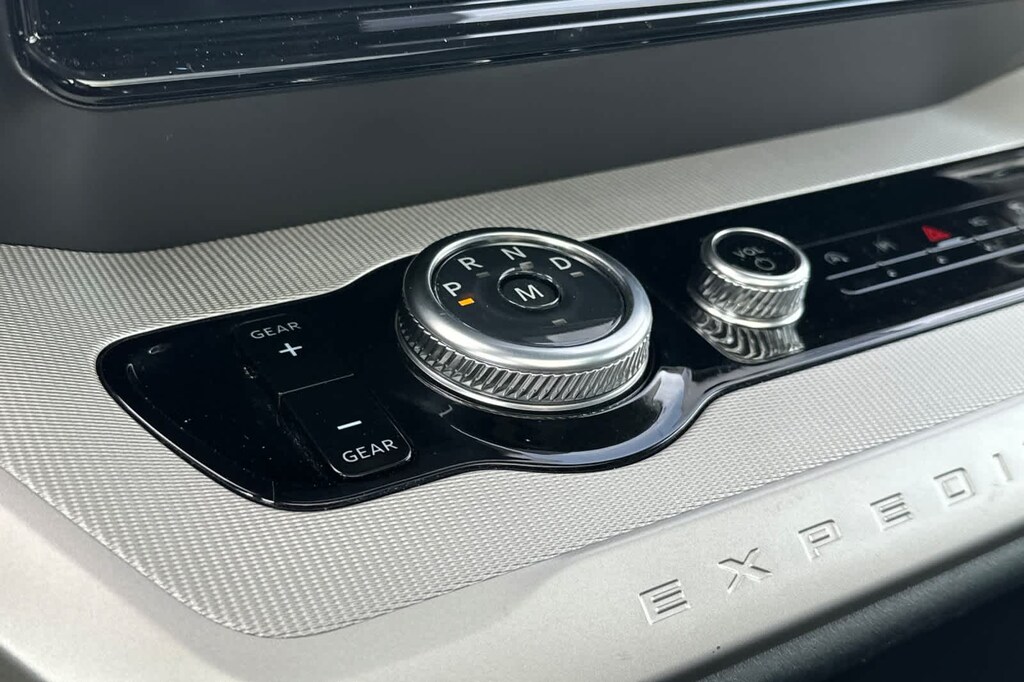 EQUIPMENT GROUP 202A HIGH PACKAGE Ford Split Gate, power upper liftgate and power lower tailgate, Wheels: 20 Carbonized Gray Bright Machined Aluminum, 360-Degree Zone Lighting, 110V/400W AC Power Outlet, 1 console outlet and one cargo area outlet, BlueCruise Equipped, 90-day trial, Not available to military sales, Universal Garage Door Opener, Power Panoramic Vista Roof w/Power Sunshade, Rain Sensing Wipers, Power Tilt/Telescopic Steering Wheel w/Memory, Memory Driver Seat, Tires: P275/60R20 AT, Ford Co-Pilot360 Active 2.0, Driver State Detection, Intersection Assist, pre-collision assist w/autonomous emergency braking, pedestrian detection, forward collision warning and dynamic brake support, Front Side Laminated Glass, Wireless Charging Pad, Located in media hub, 2nd Row Power-Folding. 2025 Ford Expedition with Dark Matter Gray exterior and Dark Gray interior features a V6 Cylinder Engine with 400 HP at 5200 RPM*.