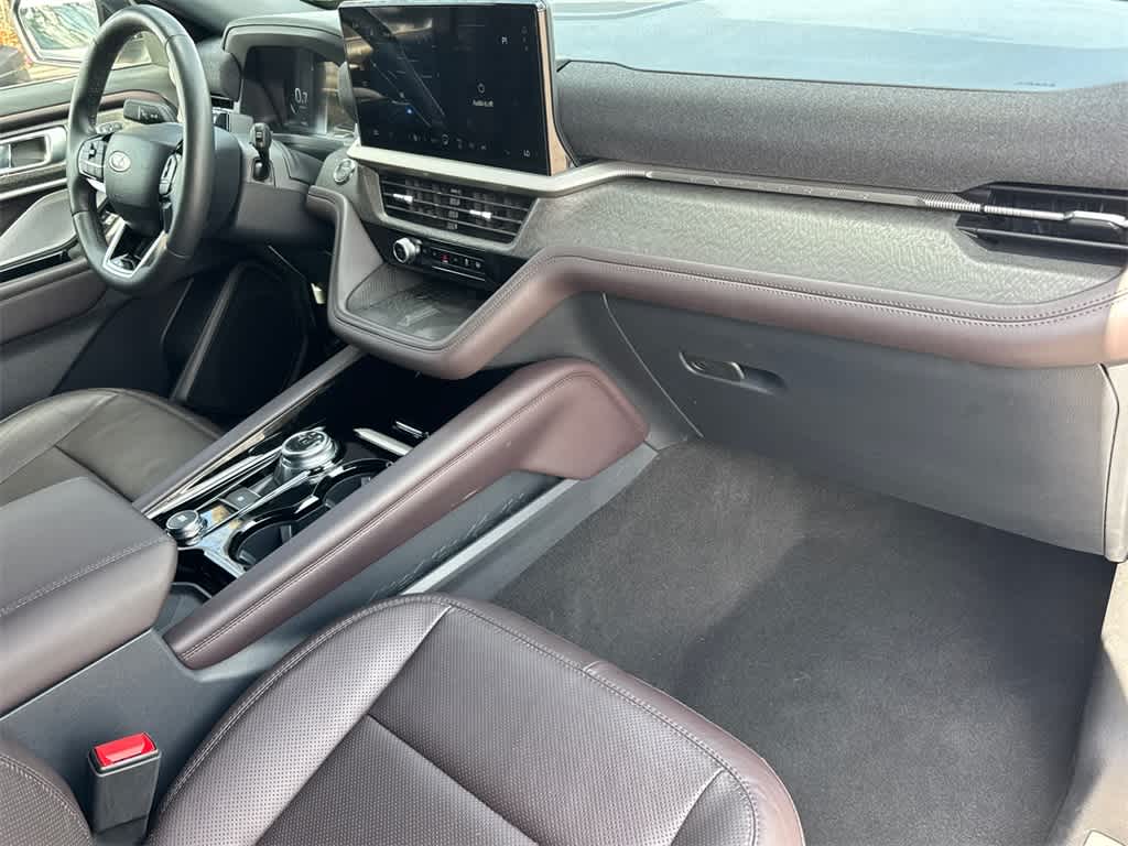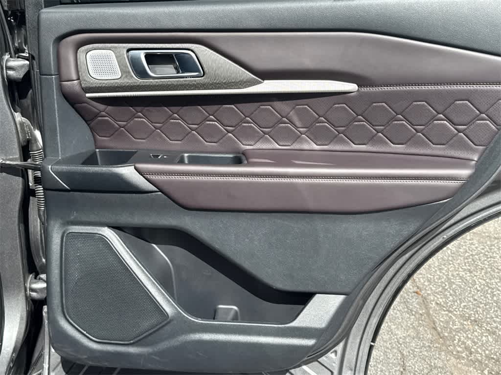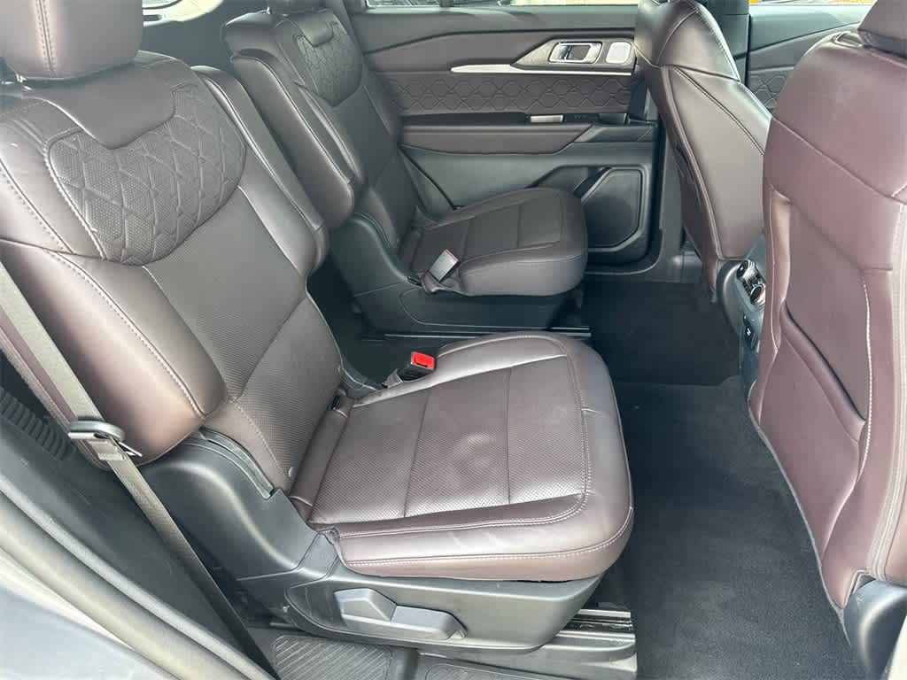 Explorer Platinum is nicely equipped with Equipment Group 600A Standard Package, Lux Leather Package (Leather Seating Surfaces Sport Captain Chairs, Platinum Badges on Front Row Seats, Quilting & Stitching on Door Panels, and Quilting & Stitching on Seats), Ford Blue Certified Certified, 4WD, 14 Speakers, 3.58 Non-Limited Slip Rear Axle, 3rd row seats: bench, 4-Wheel Disc Brakes, ABS brakes, ActiveX Trimmed Sport Captains Chairs, Air Conditioning, Alloy wheels, AM/FM radio: SiriusXM with 360L, Apple CarPlay/Android Auto, Auto High-beam Headlights, Auto-dimming door mirrors, Auto-dimming Rear-View mirror, Automatic temperature control, Brake assist, Bumpers: body-color, Compass, Delay-off headlights, Driver door bin, Driver vanity mirror, Dual front impact airbags, Dual front side impact airbags, Electronic Stability Control, Emergency communication system: 911 Assist, Exterior Parking Camera Rear, Ford BlueCruise Equipped (1-Year Plan) (DISC), Four wheel independent suspension, Front anti-roll bar, Front Bucket Seats, Front Center Armrest, Front dual zone A/C, Front fog lights, Front License Plate Bracket, Front reading lights, Fully automatic headlights, Garage door transmitter, Heated door mirrors, Heated front seats, Heated rear seats, Heated steering wheel, Illuminated entry, Internet access capable: FordPass Connect 5G, Knee airbag, Leather steering wheel, Low tire pressure warning, Memory seat, Navigation System, Occupant sensing airbag, Outside temperature display, Overhead airbag, Overhead console, Panic alarm, Passenger door bin, Passenger vanity mirror, Power door mirrors, Power driver seat, Power Liftgate, Power moonroof, Power passenger seat, Power steering, Power windows, Radio data system, Radio: B&O Sound System by Bang & Olufsen w/HD, Rain sensing wipers, Rear air conditioning, Rear anti-roll bar, Rear reading lights, Rear window defroster, Rear window wiper, Remote keyless entry, Security system, Speed control, Speed-sensing steering, Speed-Sensitive Wipers, Split folding rear seat, Spoiler, Steering wheel mounted audio controls, Tachometer, Telescoping steering wheel, Tilt steering wheel, Traction control, Trip computer, Turn signal indicator mirrors, Variably intermittent wipers, Ventilated front seats, Wheels: 20 Luster Nickel-Painted Aluminum, and Wheels: 21 Bright Machined Alum w/Tarnish Dk Pkts.