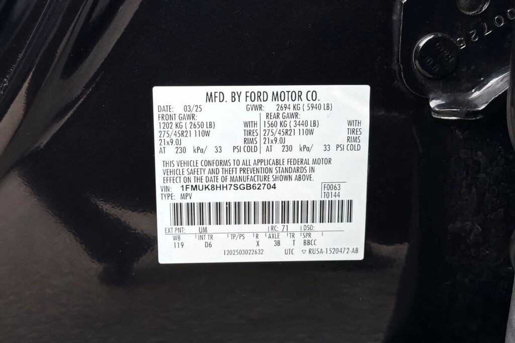 Black Metallic 2025 Ford Explorer Platinum 4WD 10-Speed Automatic 2.3L EcoBoost I-4