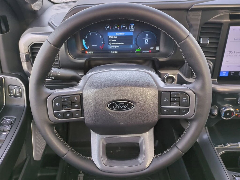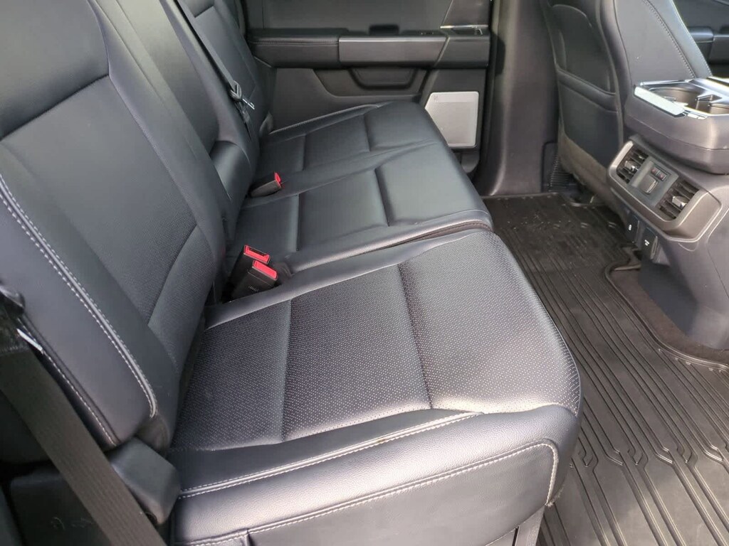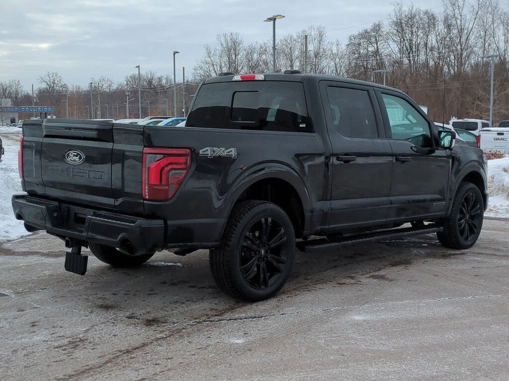 2025 Ford F-150 Lariat Black Metallic 4WD F-150 Lariat Black Appearance, 3.5L PowerBoost Full-Hybrid V6, 4WD, 2nd Row Heated Seats, 4 Pickup Box Tie-Down Plates, ActiveX Trimmed Bucket Seats (B), Ambient Lighting - Ice Blue Color Only, Bed Utility Package, Black Exterior Badging, Black Grille, Black Taillamp Bezels, Body-Color Front & Rear Bumpers, Body-Color Skull Caps & Door Handles, Console Worksurface, Dark Interior Appliques, Equipment Group 502A High, Gray Box Side Decal, Heads-Up Display, Illuminated Driver & Passenger Visors, Integrated Trailer Brake Controller, Lariat Black Appearance Package, LED Box Lighting, Matte Black Tailgate F-150 Decal, Mobile Office Package, Navigation system: Connected Navigation, Partitioned Lockable Rear Storage, Power Tailgate, Power-Sliding Rear Window, Pro Access Tailgate, Radio: B&O Unleashed Sound System by Bang & Olufsen, Tow/Haul Package, Wheels: 20 Chrome-Like PVD, Wireless Charging.
