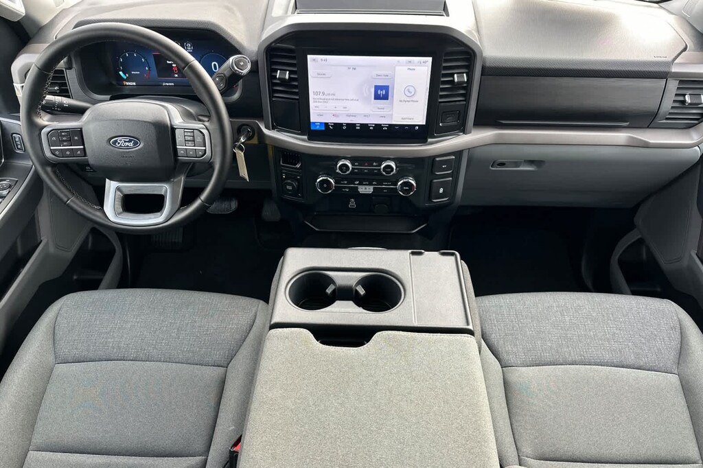 ENGINE: 3.5L V6 ECOBOOST auto start-stop technology, 3.31 Axle Ratio, GVWR: 7,100 lbs Payload Package, EQUIPMENT GROUP 301A STANDARD Chrome Door & Tailgate Handles, Wrapped Steering Wheel, Black Painted Grille w/Chrome Center Bar, coast to coast black mesh, Dual-Zone Electronic Automatic Temperature Control, (DEATC), 6 Angular Bright Anodized Step Bar, Chrome Single-Tip Exhaust, PLASTIC DROP-IN BEDLINER, TRANSMISSION: ELECTRONIC 10-SPEED AUTOMATIC SelectShift w/progressive range select and selectable drive modes: normal, ECO, sport, tow/haul, slippery, deep snow/sand and mud/rut (STD). 2025 Ford F-150 with Oxford White exterior and Medium Dark Slate interior features a V6 Cylinder Engine with 325 HP at 5000 RPM*.