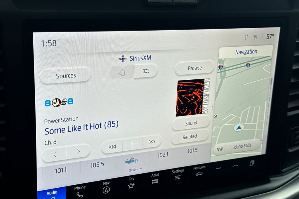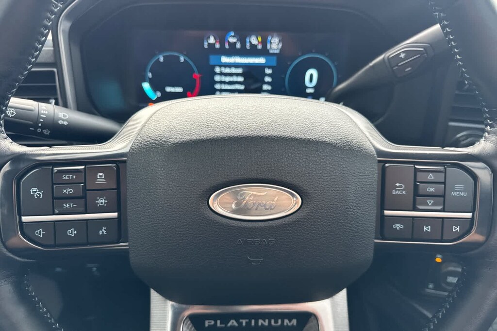 Its a Great Day at Lithia Ford Idaho Falls. Certified. Fresh Oil Change, Certified Pre-Owned Inspection, Interior and Exterior Professionally Detailed for Delivery, Professionally Detailed, Non-Smoker, Certified By Carfax - No Accidents, 4WD, 4-Wheel Disc Brakes, 410 Amp Dual Alternators, 5th Wheel/Gooseneck Hitch Prep Package, ABS brakes, Adjustable pedals, Air Conditioning, Auto High-beam Headlights, Auto tilt-away steering wheel, Auto-dimming Rear-View mirror, Automatic temperature control, Brake assist, Bumpers: body-color, Delay-off headlights, Electronic Stability Control, Engine Block Heater, Flow-Through Console, Front Bucket Seats, Front Center Armrest, Front dual zone A/C, Front fog lights, Fully automatic headlights, FX4 Off-Road Package, Garage door transmitter, Heads-Up Display, Heated door mirrors, Heated front seats, Heated steering wheel, Hill Descent Control, Leather steering wheel, Memory seat, Navigation System, Off-Road Specifically Tuned Shock Absorbers, Pedal memory, Power door mirrors, Power driver seat, Power passenger seat, Power steering, Power windows, Radio: B&O Unleashed Sound System by Bang & Olufsen, Rain sensing wipers, Rapid-Heat Supplemental Cab Heater, Rear step bumper, Rear window defroster, Remote keyless entry, Security system, Steering wheel memory, Steering wheel mounted A/C controls, Steering wheel mounted audio controls, Tachometer, Telescoping steering wheel, Tilt steering wheel, Traction control, Turn signal indicator mirrors, Twin Panel Power Moonroof, Unique FX4 Off-Road Box Decal, Upfitter Switches (6), Variably intermittent wipers. Odometer is 2675 miles below market average! Clean CARFAX.