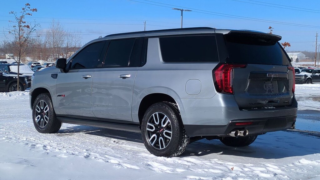 Certified. 2023 GMC Yukon XL AT4 Is nicely equipped with AT4 Premium Package (Dual-Pane Panoramic Power Sunroof and Power-Retractable Assist Steps), Preferred Equipment Group 4SB (2 Presets For Outside Rearview Mirrors, 3 Years of GMC Connected Services, 3 Years of OnStar Safety & Security, 3rd Row 60/40 Power-Folding Split-Bench Seat, Black Roof-Mounted Luggage Rack Side Rails, Bose 9-Speaker Stereo Audio System Feature, Bright Front & Rear Door Sill Plates, Front High-Approach Angle Fascia, Hands-Free Power Programmable Rear Liftgate, Heated & Ventilated Driver & Front Passenger Seats, Heated 2nd Row Outboard Position Seats, Heated Driver & Front Passenger Seats, Heated Steering Wheel, Heavy-Duty Air Filter, Hill Descent Control, Inside Rear-View Auto-Dimming Mirror, Outside Heated Power-Adjustable Mirrors, Power Release 2nd Row 60/40 Split-Folding Bench Seat, Power Tilt & Telescopic Steering Column, Red Horizontal-Mounted Recovery Hooks, Safety Alert Seat, Universal Home Remote, and Wireless Charging), Technology Package (15" Diagonal Multi-Color Head-Up Display, HD Surround Vision, and Rear Pedestrian Alert), Ford Blue Advantage: Blue Certified Certified, 4WD, 3 Years of OnStar Safety & Security (DISC), 3.23 Rear Axle Ratio, 3rd row seats: split-bench, 4-Wheel Disc Brakes, 9 Speakers, ABS brakes, Adaptive suspension, Air Conditioning, All-Weather Cargo Mat (LPO), Alloy wheels, AM/FM radio: SiriusXM with 360L, AM/FM Stereo, Apple CarPlay/Android Auto, Auto High-beam Headlights, Auto-dimming door mirrors, Auto-dimming Rear-View mirror, Auto-leveling suspension, Automatic Emergency Braking, Automatic temperature control, Black Nameplates (LPO), Brake assist, Bumpers: body-color, Compass, Delay-off headlights, Driver door bin, Driver vanity mirror, Dual Exhaust System, Dual front impact airbags, Dual front side impact airbags, Electronic Stability Control, Emergency communication system: OnStar and GMC connected services capable, Following Distance Indicator, Forward Collision Alert, Four wheel independent suspension, Front & Rear Park Assist, Front anti-roll bar, Front Bucket Seats, Front Center Armrest, Front dual zone A/C, Front fog lights, Front Pedestrian Braking, Front reading lights, Fully automatic headlights, Garage door transmitter, Heated door mirrors, Heated front seats, Heated rear seats, Heated steering wheel, Illuminated entry, Illuminated Mirror GMC Emblem (LPO), IntelliBeam Automatic High Beam On/Off, Lane Change Alert w/Side Blind Zone Alert, Lane Keep Assist w/Lane Departure Warning, Low tire pressure warning, Magnetic Ride Control Suspension, Memory seat, Navigation System, Not Equipped w/4-Way Driver & Fr Pass Pwr Lumbar, Occupant sensing airbag, Outside temperature display, Overhead airbag, Overhead console, Panic alarm, Passenger door bin, Passenger vanity mirror, Perforated Leather Seating Surfaces, Power door mirrors, Power driver seat, Power Liftgate, Power passenger seat, Power Release 2nd Row Bucket Seats, Power steering, Power windows, Rain sensing wipers, Rear air conditioning, Rear anti-roll bar, Rear Cross Traffic Alert, Rear reading lights, Rear seat center armrest, Rear Seat Media System, Rear window defroster, Rear window wiper, Remote keyless entry, Roof rack: rails only, Security system, SiriusXM w/360L, Speed control, Speed-sensing steering, Split folding rear seat, Spoiler, Steering wheel memory, Steering wheel mounted audio controls, Tachometer, Telescoping steering wheel, Tilt steering wheel, Traction control, Trip computer, Turn signal indicator mirrors, Variably intermittent wipers, Ventilated front seats, Voltmeter, and Wheels: 20" x 9" 6-Spoke Machined Aluminum.