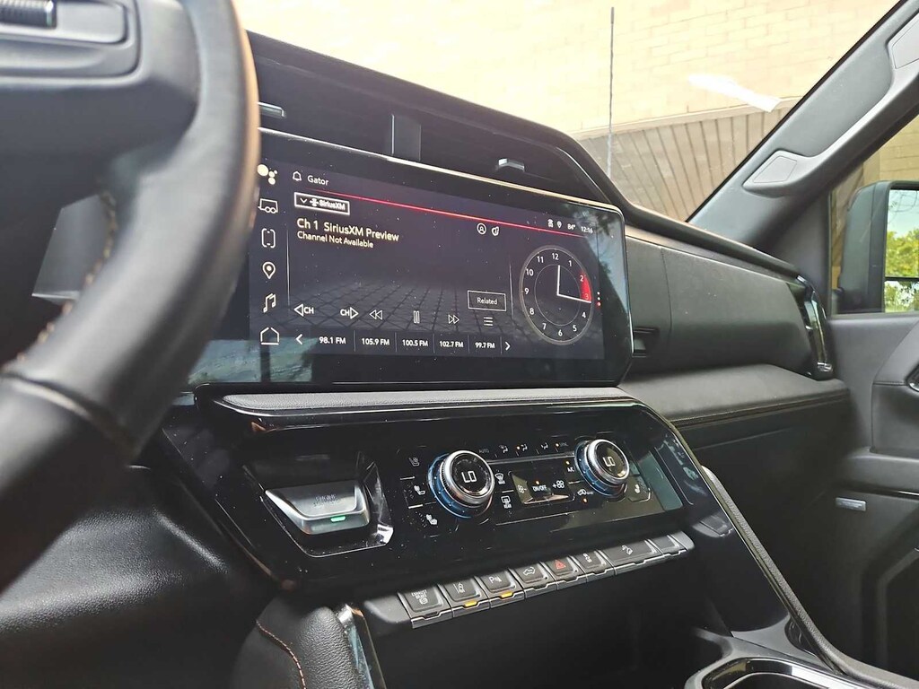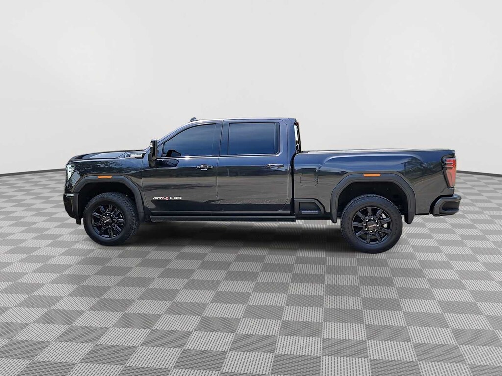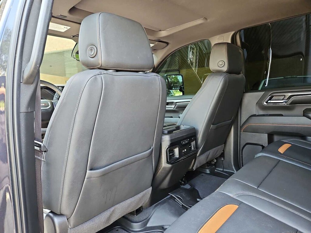 Recent Arrival! CARFAX One-Owner. Clean CARFAX. Certified. Titanium Rush Metallic 10-Speed Automatic, 4WD, Jet Black With Kalahari Accents Leather. This Sierra 2500HD AAT4 is nicely equipped with AT4 Preferred Package (Adaptive Cruise Control, LED Smoked Amber Roof Marker Lamps, Power Sliding Rear Window w/Defogger, and Universal Home Remote), AT4 Premium Plus Package (Off-Road High Clearance Step (LPO) and Power Sunroof), Preferred Equipment Group 4SB (120-Volt Bed Mounted Power Outlet, 120-Volt Instrument Panel Power Outlet, 2 Charge-Only Rear USB Ports, 2 Charge/Data USB Ports Inside Center Console, 2 USB Ports, 2-Speed Active Transfer Case, Bed View Camera w/2 Trailer Camera Provisions, Bose Premium 7-Speaker Sound System, Deep-Tinted Glass, Electric Rear-Window Defogger, Floor-Mounted Center Console, Front Prem Floor Liners w/Removable Carpet Insert, Front Rain-Sensing Wipers, Gloss Black Header Grille & Grille Insert Bars, GMC Connected Access Capable, HD Surround Vision, Heated 2nd Row Outboard Seats, Heated Driver & Front Outboard Passenger Seats, Integrated Trailer Brake Controller, Keyless Open & Start, LED Cargo Area Lighting, Manual Tilt-Wheel/Telescoping Steering Column, OnStar & GMC Connected Services Capable, Power Front Passenger Windows w/Express Up/Down, Push Button Start, Rear Cross Traffic Alert, Rear Prem Floor Liners w/Removable Carpet Insert, Rear Wheelhouse Liners, Remote Vehicle Starter System, Safety Alert Seat, SiriusXM w/360L, Spray-On Bedliner w/AT4 Logo, Steering Wheel Audio Controls, Trailer Cam Provisions & Trailer Viewing Software, Trailer Side Blind Zone Alert, Ultrasonic Front & Rear Park Assist, Unauthorized Entry Theft-Deterrent System, Ventilated Driver & Front Passenger Seats, Wireless Charging, and Wireless Phone Projection), Technology Package (Inside Rearview Auto-Dimming Rear Camera Mirror and Multicolor 15 Diagonal Head-Up Display), X31 Off-Road Package (Hill Descent Control), GMC Certified Pre-Owned Certified, 10-Speed Automatic, 4WD, Jet Black With Kalahari Accents Leather, 10-Way Power Driver Seat Adjuster w/Lumbar, 10-Way Power Passenger Seat Adjuster w/Lumbar, 220-Amp Alternator, 3.42 Axle Ratio, 3.73 Rear Axle Ratio, 4-Wheel Disc Brakes, 5th Wheel & Gooseneck Trailer Wiring Provisions, 7 Speakers, ABS brakes, Air Conditioning, Alloy wheels, AM/FM radio: SiriusXM with 360L, Apple CarPlay/Android Auto, Auto High-beam Headlights, Auto-dimming door mirrors, Auto-dimming Rear-View mirror, Automatic Emergency Braking, Automatic temperature control, Brake assist, Buckle to Drive, Bumpers: body-color, Compass, Delay-off headlights, Driver door bin, Driver Memory, Driver vanity mirror, Dual front impact airbags, Dual front side impact airbags, Electronic Stability Control, Engine Block Heater, Exhaust Brake, Following Distance Indicator, Forward Collision Alert, Front anti-roll bar, Front Bucket Seats, Front Center Armrest, Front dual zone A/C, Front fog lights, Front Pedestrian Braking, Front reading lights, Front wheel independent suspension, Fully automatic headlights, Heated door mirrors, Heated front seats, Heated rear seats, Heated steering wheel, Heavy-Duty 80 Amp Battery, Hitch Guidance w/Hitch View, Illuminated entry, In-Vehicle Trailering System App, IntelliBeam Automatic High Beam On/Off, Lane Departure Warning System, Low tire pressure warning, Memory seat, Occupant sensing airbag, Off-Road Suspension, Outside temperature display, Overhead airbag, Overhead console, Panic alarm, Passenger door bin, Passenger vanity mirror, Perforated Leather-Appointed Front Seat Trim, Pickup Box, Power door mirrors, Power driver seat, Power passenger seat, Power steering, Power windows, Power-Retractable Black Assist Steps, Premium audio system: Premium GMC Infotainment System, Radio: AM/FM w/Premium GMC Infotainment System, Rain sensing wipers, Rear reading lights, Rear seat center armrest, Rear step bumper, Rear Underseat Storage (LPO), Rear window defroster, Remote keyless entry, REV Hard