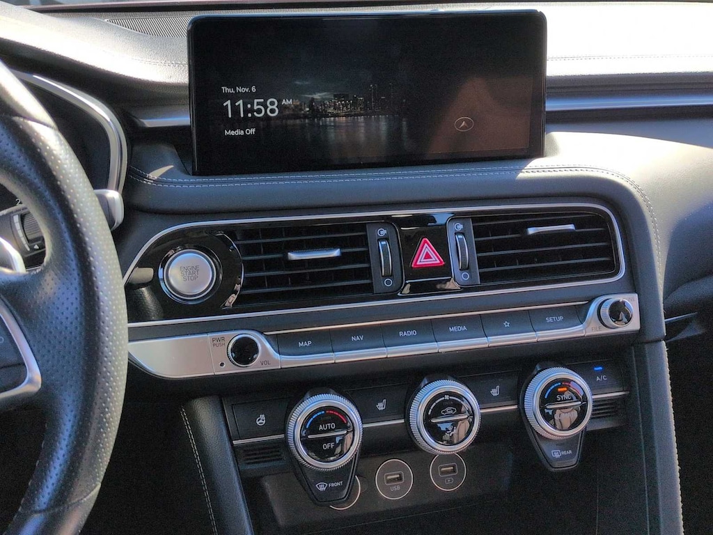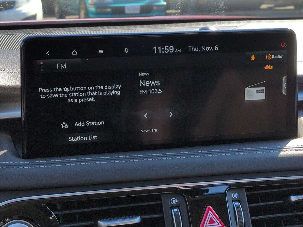 Android Auto & Apple CarPlay, Auto High-beam Headlights, Auto-dimming Rear-View mirror, Automatic temperature control, Driver door bin, Emergency communication system: Genesis Connected Services, Exterior Parking Camera Rear, Front Bucket Seats, Front dual zone A/C, Fully automatic headlights, Garage door transmitter: HomeLink, Heated door mirrors, Heated front seats, Heated Multi-Adjustable Front Bucket Seats, Heated steering wheel, Illuminated entry, Leatherette Seating Surfaces, Navigation System, Option Group 01, Radio: AM/FM/SiriusXM/HD Audio System, Wheels: 19 x 8.0J Fr & 19 x 8.5J Rr Alloy. CARFAX One-Owner.