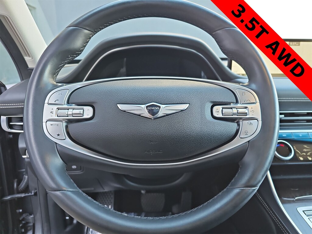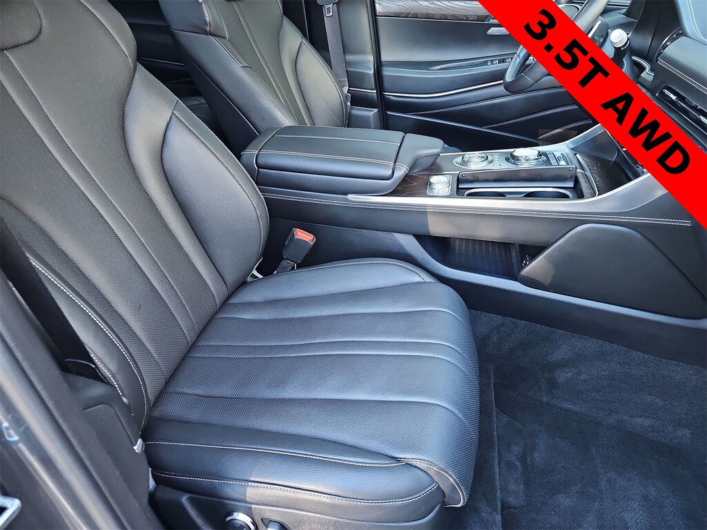 THIS VEHICLE IS EQUIPPED WITH THE FOLLOWING OPTIONS AND FEATURES: Option Group 01, Genesis Certified Certified, 12 Speakers, 3.909 Axle Ratio, 4-Wheel Disc Brakes, ABS brakes, Adaptive suspension, Air Conditioning, Alloy wheels, AM/FM radio: SiriusXM, Android Auto & Apple CarPlay, Anti-whiplash front head restraints, Auto High-beam Headlights, Auto tilt-away steering wheel, Auto-dimming door mirrors, Auto-dimming Rear-View mirror, Automatic temperature control, Brake assist, Bumpers: body-color, Compass, Delay-off headlights, Driver door bin, Driver vanity mirror, Dual front impact airbags, Dual front side impact airbags, Electronic Stability Control, Emergency communication system: Genesis Connected Services, Exterior Parking Camera Rear, First Aid Kit, Four wheel independent suspension, Front anti-roll bar, Front Bucket Seats, Front Center Armrest, Front dual zone A/C, Front reading lights, Fully automatic headlights, Garage door transmitter: HomeLink, Genuine wood console insert, Genuine wood dashboard insert, Genuine wood door panel insert, Heated & Ventilated Front Bucket Seats, Heated door mirrors, Heated front seats, Heated steering wheel, Illuminated Door Scuff Plates, Illuminated entry, Knee airbag, Leather Seating Surfaces, Leather steering wheel, Leatherette Seating Surfaces, Low tire pressure warning, Memory seat, Navigation System, Occupant sensing airbag, Outside temperature display, Overhead airbag, Overhead console, Panic alarm, Passenger door bin, Passenger vanity mirror, Power door mirrors, Power driver seat, Power Liftgate, Power moonroof, Power passenger seat, Power steering, Power windows, Radio data system, Radio: AM/FM/SiriusXM/HD Audio System, Radio: AM/FM/SiriusXM/HD Lexicon Prem Audio System, Rain sensing wipers, Rear air conditioning, Rear anti-roll bar, Rear reading lights, Rear seat center armrest, Rear side impact airbag, Rear window defroster, Rear window wiper, Remote keyless entry, Reversible Cargo Tray, Security system, Speed control, Speed-sensing steering, Speed-Sensitive Wipers, Split folding rear seat, Spoiler, Steering wheel memory, Steering wheel mounted audio controls, Tachometer, Telescoping steering wheel, Tilt steering wheel, Traction control, Trip computer, Turn signal indicator mirrors, Variably intermittent wipers, Ventilated front seats, Wheel Locks, and Wheels: 20 x 8.5J Medium Metallic Gray Alloy. Recent Arrival! Odometer is 7823 miles below market average!