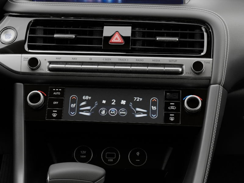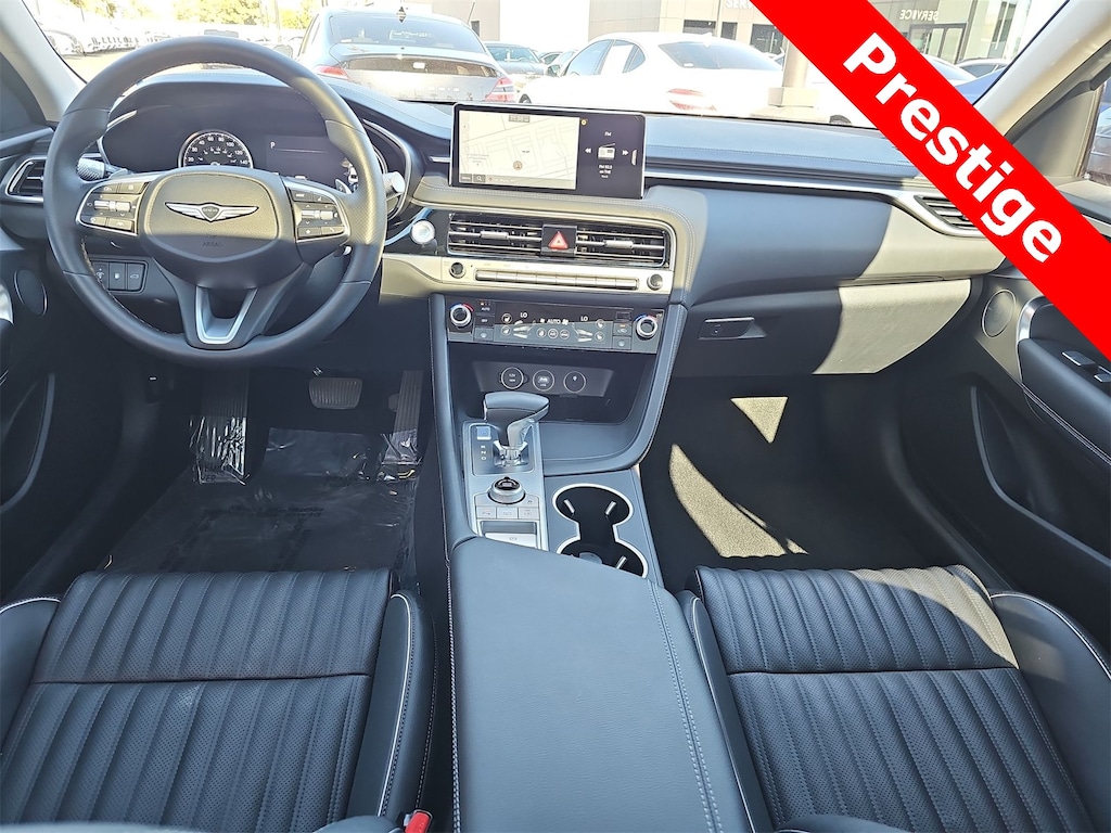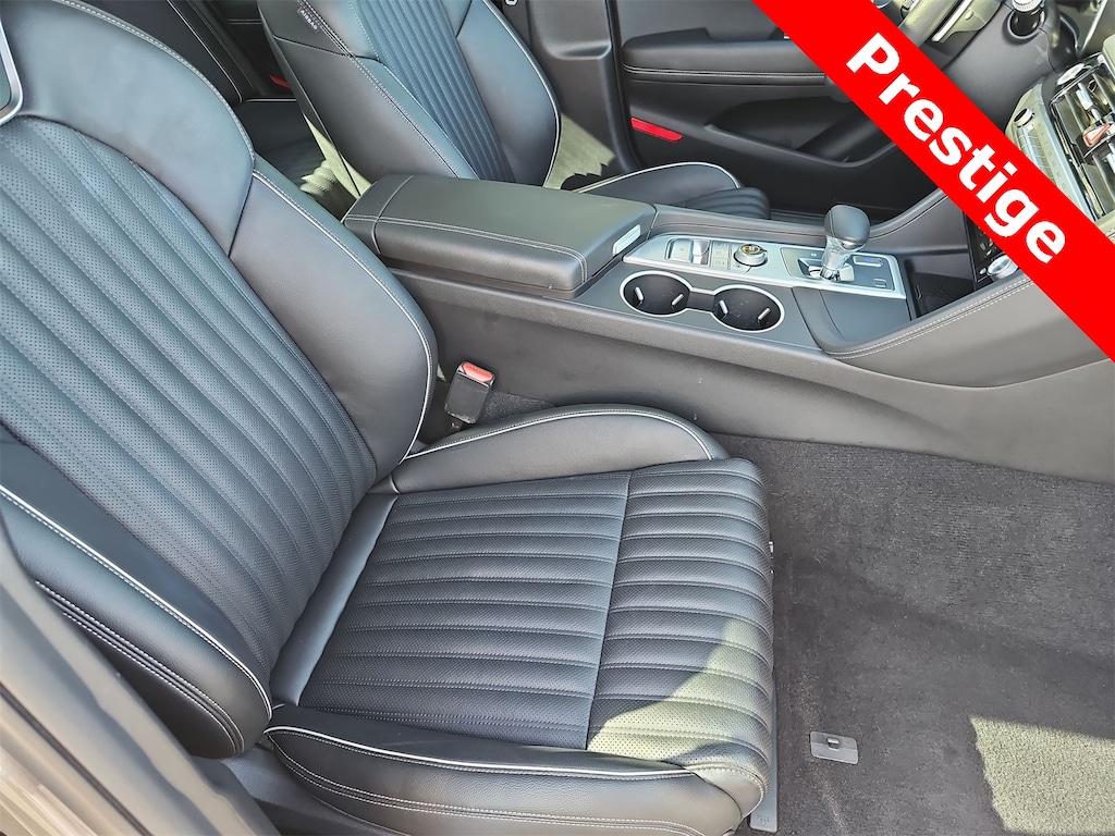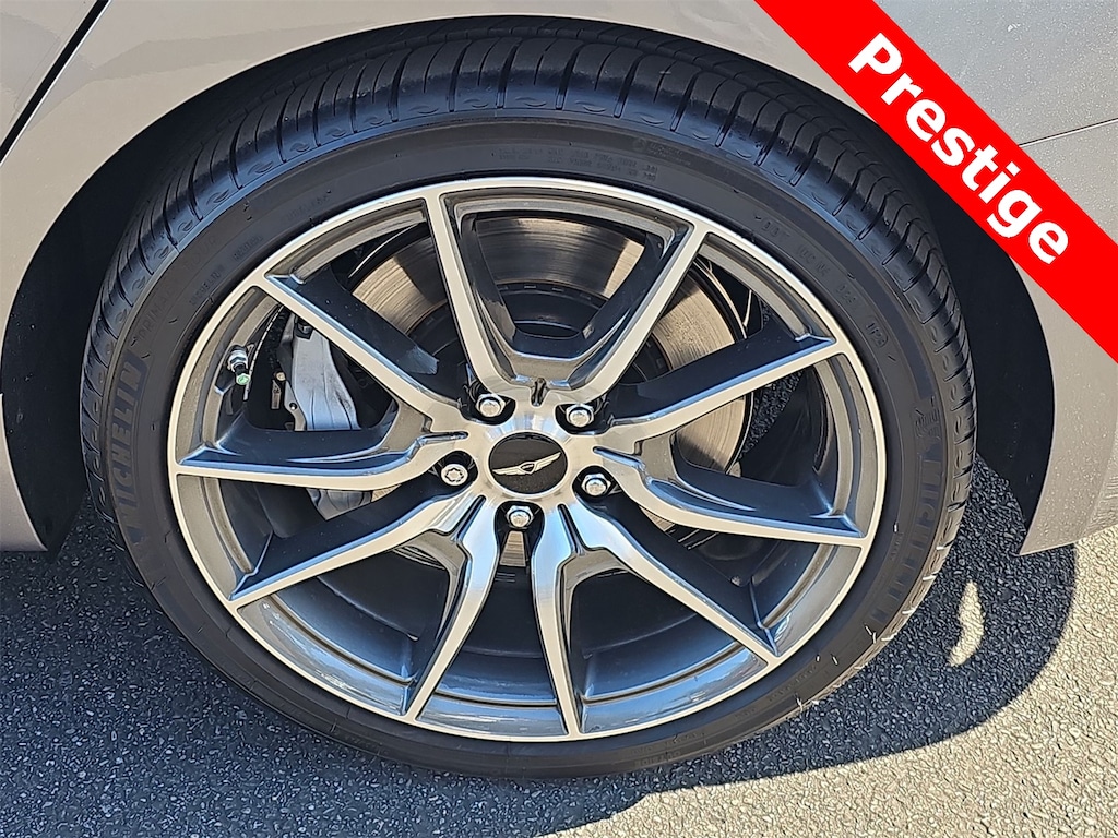 THIS VEHICLE IS EQUIPPED WITH THE FOLLOWING OPTIONS AND FEATURES: Option Group 01, Genesis Certified Certified, 15 Speakers, 4-Wheel Disc Brakes, ABS brakes, Air Conditioning, All Season Fitted Liners, Alloy wheels, AM/FM radio: SiriusXM, Android Auto & Apple CarPlay, Anti-whiplash front head restraints, Auto High-beam Headlights, Auto-dimming door mirrors, Auto-dimming Rear-View mirror, Automatic temperature control, Brake assist, Bumpers: body-color, Delay-off headlights, Driver door bin, Driver vanity mirror, Dual front impact airbags, Dual front side impact airbags, Electronic Stability Control, Emergency communication system: Genesis Connected Services, Exterior Parking Camera Rear, First Aid Kit, Four wheel independent suspension, Front anti-roll bar, Front Bucket Seats, Front Center Armrest, Front dual zone A/C, Front reading lights, Fully automatic headlights, Garage door transmitter: HomeLink, Heated door mirrors, Heated front seats, Heated steering wheel, Illuminated entry, Knee airbag, Leather Seating Surfaces, Low tire pressure warning, Memory seat, Navigation System, Occupant sensing airbag, Outside temperature display, Overhead airbag, Overhead console, Panic alarm, Passenger door bin, Passenger vanity mirror, Power door mirrors, Power driver seat, Power moonroof, Power passenger seat, Power steering, Power windows, Rain sensing wipers, Rear anti-roll bar, Rear reading lights, Rear seat center armrest, Rear side impact airbag, Rear window defroster, Remote keyless entry, Reversible Cargo Tray, Security system, Speed control, Speed-Sensitive Wipers, Split folding rear seat, Steering wheel memory, Steering wheel mounted audio controls, Tachometer, Telescoping steering wheel, Traction control, Trip computer, Turn signal indicator mirrors, Variably intermittent wipers, and Ventilated front seats. 21/29 City/Highway MPG