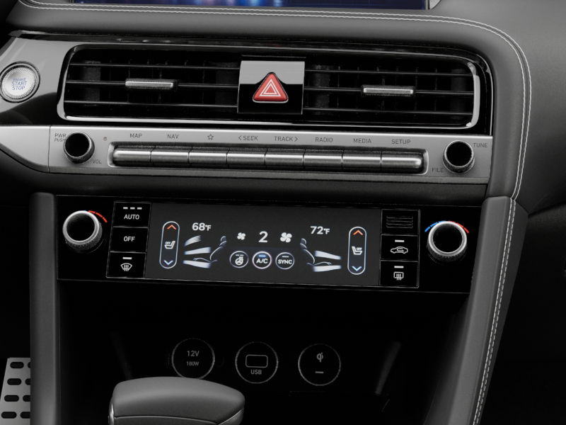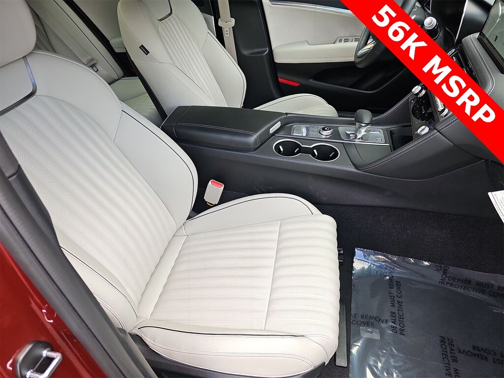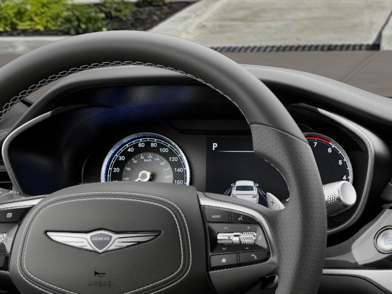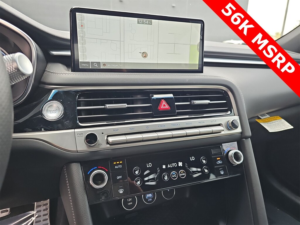 THIS VEHICLE IS EQUIPPED WITH THE FOLLOWING OPTIONS AND FEATURES: Option Group 01, Genesis Certified Certified, 15 Speakers, 4-Wheel Disc Brakes, ABS brakes, Air Conditioning, Alloy wheels, AM/FM radio: SiriusXM, Android Auto & Apple CarPlay, Anti-whiplash front head restraints, Auto High-beam Headlights, Auto-dimming door mirrors, Auto-dimming Rear-View mirror, Automatic temperature control, Brake assist, Bumpers: body-color, Delay-off headlights, Driver door bin, Driver vanity mirror, Dual front impact airbags, Dual front side impact airbags, Electronic Stability Control, Emergency communication system: Genesis Connected Services, Exterior Parking Camera Rear, First Aid Kit, Four wheel independent suspension, Front anti-roll bar, Front Bucket Seats, Front Center Armrest, Front dual zone A/C, Front reading lights, Fully automatic headlights, Garage door transmitter: HomeLink, Heads-Up Display, Heated door mirrors, Heated front seats, Heated steering wheel, Illuminated Door Scuff Plates, Illuminated entry, Knee airbag, Leather Seating Surfaces, Low tire pressure warning, Memory seat, Navigation System, NFC Key Card, Occupant sensing airbag, Outside temperature display, Overhead airbag, Overhead console, Panic alarm, Passenger door bin, Passenger vanity mirror, Power door mirrors, Power driver seat, Power moonroof, Power passenger seat, Power steering, Power windows, Rain sensing wipers, Rear anti-roll bar, Rear reading lights, Rear seat center armrest, Rear side impact airbag, Rear window defroster, Remote keyless entry, Reversible Cargo Tray, Security system, Speed control, Speed-sensing steering, Speed-Sensitive Wipers, Split folding rear seat, Steering wheel memory, Steering wheel mounted audio controls, Tachometer, Telescoping steering wheel, Traction control, Trip computer, Turn signal indicator mirrors, Variably intermittent wipers, and Ventilated front seats.