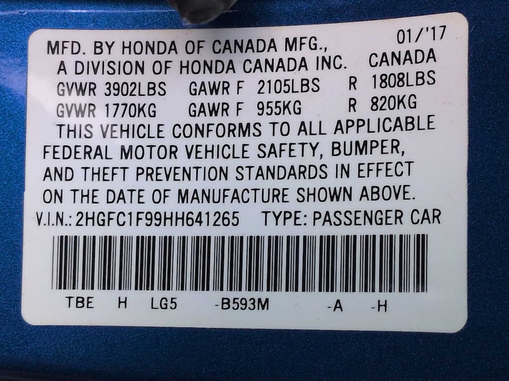 2017 Honda Civic Touring FWD 32/42 City/Highway MPG