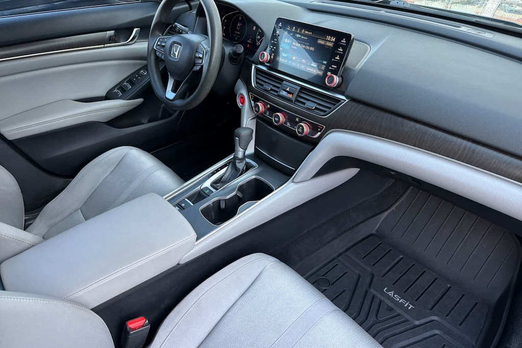 This Accord has made me happy. I had to purchase it quickly after my A5 was totaled and my insurance company gave me little time in a rental. With mostly around town driving I was able to see how having the torque down low was of great benefit. I traveled to Austin to COTA and while on the toll roads 85 - 90 was comfortable and quiet. I kept driving on that tank until Thursday and was happy to avg 33.8 MPG of mixed Hwy and City. I tend to have a lead foot and obtaining that surprised me. I have played with many of the electronic systems and love the integration of these systems. If you explore the car systems, you will find items that will make ownership more enjoyable. Smooth when you want it, capable when you need it. HUGE trunk and backseat doesnt hurt. - 5.0