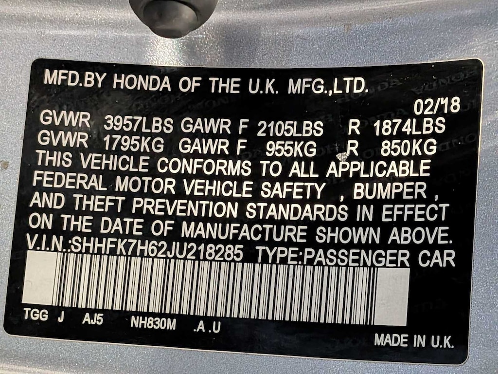 - SHHFK7H62JU218285