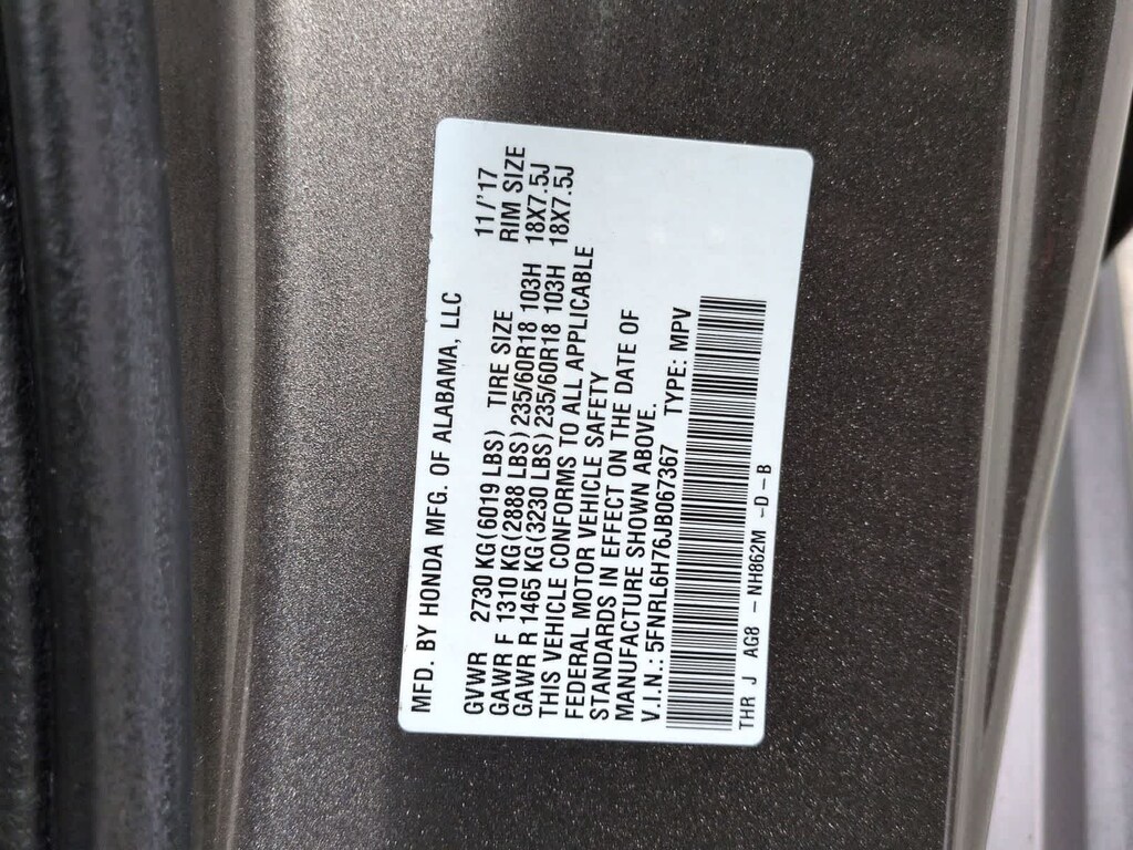 - 5FNRL6H76JB067367