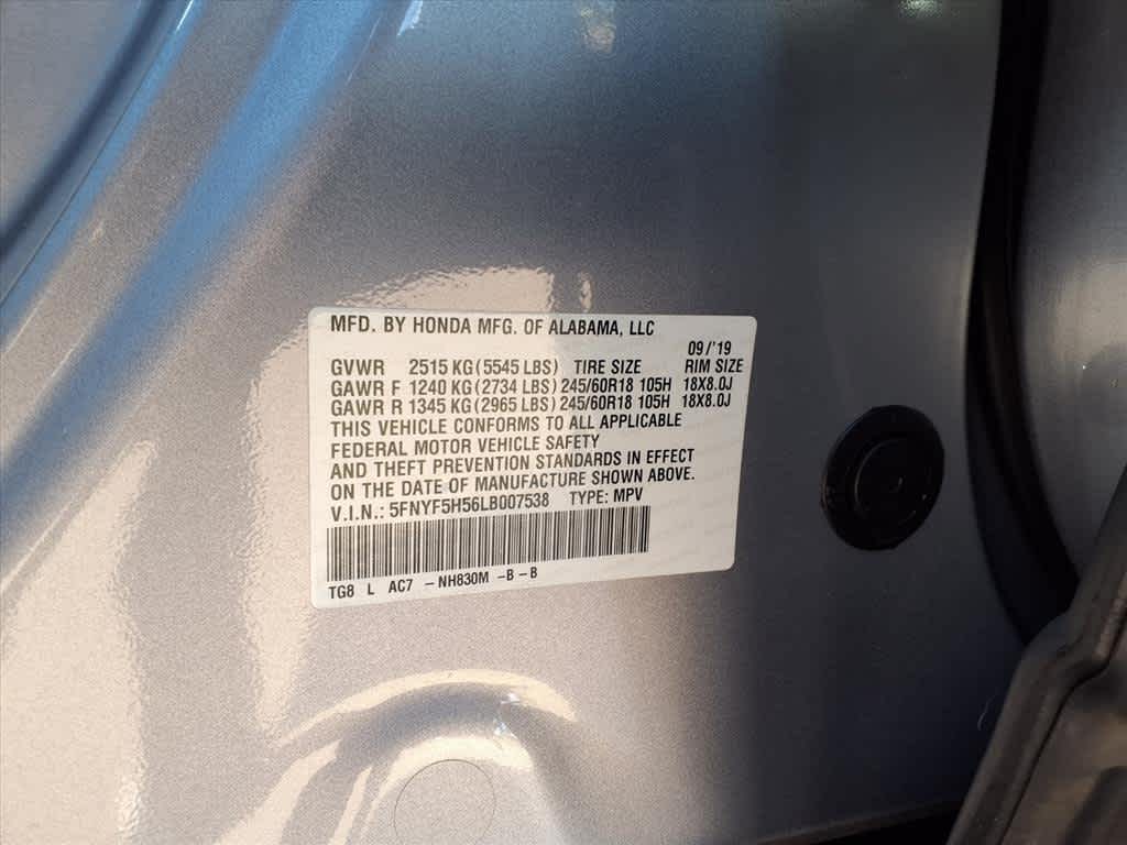HondaTrue Used Certified, 18 Machine-Finished Alloy Wheels, 3rd row seats: split-bench, 4-Wheel Disc Brakes, 4.25 Axle Ratio, 7 Speakers, A/V remote: CabinControl, ABS brakes, Air Conditioning, Alloy wheels, AM/FM radio: SiriusXM, Apple CarPlay/Android Auto, Auto High-beam Headlights, Auto-dimming Rear-View mirror, Automatic temperature control, Blind Spot Information (BSI) System warning, Brake assist, Bumpers: body-color, Delay-off headlights, Driver door bin, Driver vanity mirror, Dual front impact airbags, Dual front side impact airbags, Electronic Stability Control, Emergency communication system: HondaLink Assist, Exterior Parking Camera Rear, Forward collision: Collision Mitigation Braking System (CMBS) + FCW mitigation, Four wheel independent suspension, Front anti-roll bar, Front Bucket Seats, Front Center Armrest, Front dual zone A/C, Front fog lights, Front reading lights, Fully automatic headlights, Garage door transmitter: HomeLink, Heated door mirrors, Heated Front Bucket Seats, Heated front seats, Illuminated entry, Lane departure: Lane Keeping Assist System (LKAS) active, Leather Seat Trim, Leather Shift Knob, Low tire pressure warning, Memory seat, Occupant sensing airbag, Outside temperature display, Overhead airbag, Overhead console, Panic alarm, Passenger door bin, Passenger vanity mirror, Power door mirrors, Power driver seat, Power Liftgate, Power moonroof, Power passenger seat, Power steering, Power windows, Radio data system, Radio: 215-Watt Audio System, Rear air conditioning, Rear anti-roll bar, Rear reading lights, Rear seat center armrest, Rear window defroster, Rear window wiper, Reclining 3rd row seat, Remote keyless entry, Security system, Speed control, Speed-sensing steering, Speed-Sensitive Wipers, Split folding rear seat, Spoiler, Steering wheel mounted audio controls, Tachometer, Telescoping steering wheel, Tilt steering wheel, Traction control, Trip computer, Turn signal indicator mirrors, Variably intermittent wipers.