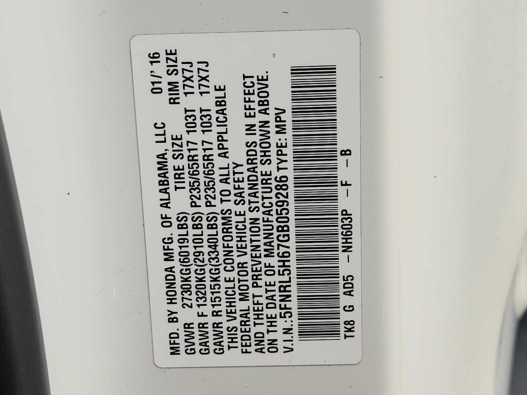- 5FPYK3F71LB005238