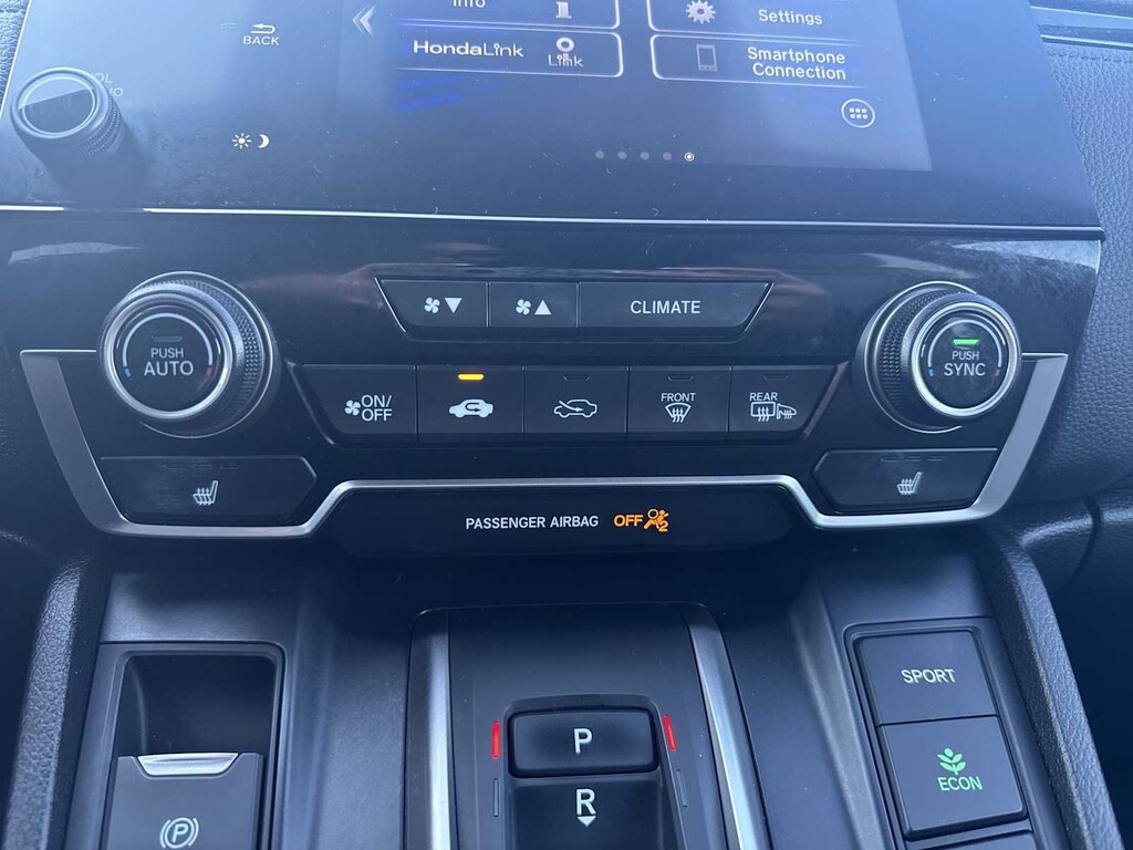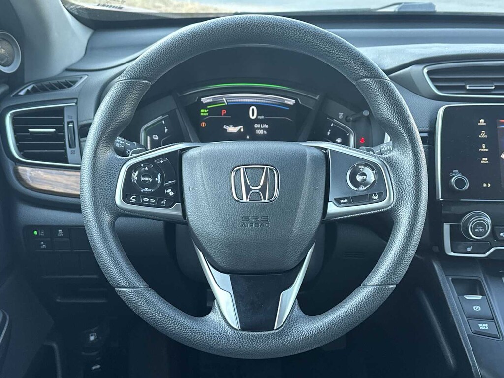 CR-V Hybrid EX is nicely equipped with CR-V Hybrid EX, HondaTrue Certified Certified, 4D Sport Utility, 2.0L I4 DOHC 16V, eCVT, AWD, Red, Gray Cloth, 18 Alloy Wheels, 3.89 Axle Ratio, 4-Wheel Disc Brakes, 8 Speakers, ABS brakes, Adaptive Cruise Control: Adaptive Cruise Control (ACC) with Low-Speed Follow, Air Conditioning, Alloy wheels, AM/FM radio: SiriusXM, Apple CarPlay/Android Auto, Auto High-beam Headlights, Automatic temperature control, Blind Spot Information (BSI) System warning, Brake assist, Bumpers: body-color, Cloth Seat Trim, Compass, Delay-off headlights, Driver door bin, Driver vanity mirror, Dual front impact airbags, Dual front side impact airbags, Electronic Stability Control, Exterior Parking Camera Rear, Forward collision: Collision Mitigation Braking System (CMBS) + FCW mitigation, Four wheel independent suspension, Front anti-roll bar, Front Bucket Seats, Front Center Armrest, Front dual zone A/C, Front fog lights, Front reading lights, Heated door mirrors, Heated Front Bucket Seats, Heated front seats, Illuminated entry, Low tire pressure warning, Memory seat, Occupant sensing airbag, Outside temperature display, Overhead airbag, Overhead console, Panic alarm, Passenger door bin, Passenger vanity mirror, Power door mirrors, Power driver seat, Power moonroof, Power steering, Power windows, Radio data system, Radio: 180-Watt AM/FM/HD/SiriusXM Audio System, Rear anti-roll bar, Rear seat center armrest, Rear window defroster, Rear window wiper, Remote keyless entry, Security system, Speed control, Speed-sensing steering, Speed-Sensitive Wipers, Split folding rear seat, Spoiler, Steering wheel mounted audio controls, Telescoping steering wheel, Tilt steering wheel, Traction control, Trip computer, Turn signal indicator mirrors, and Variably intermittent wipers.