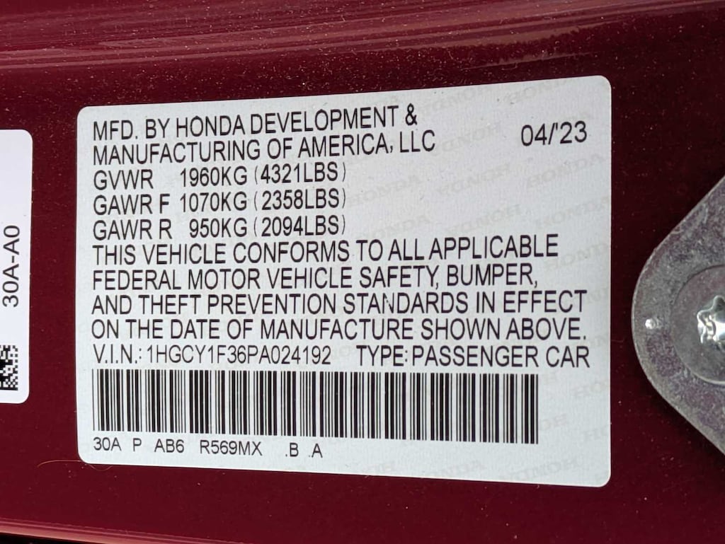 - 1HGCY1F36PA024192