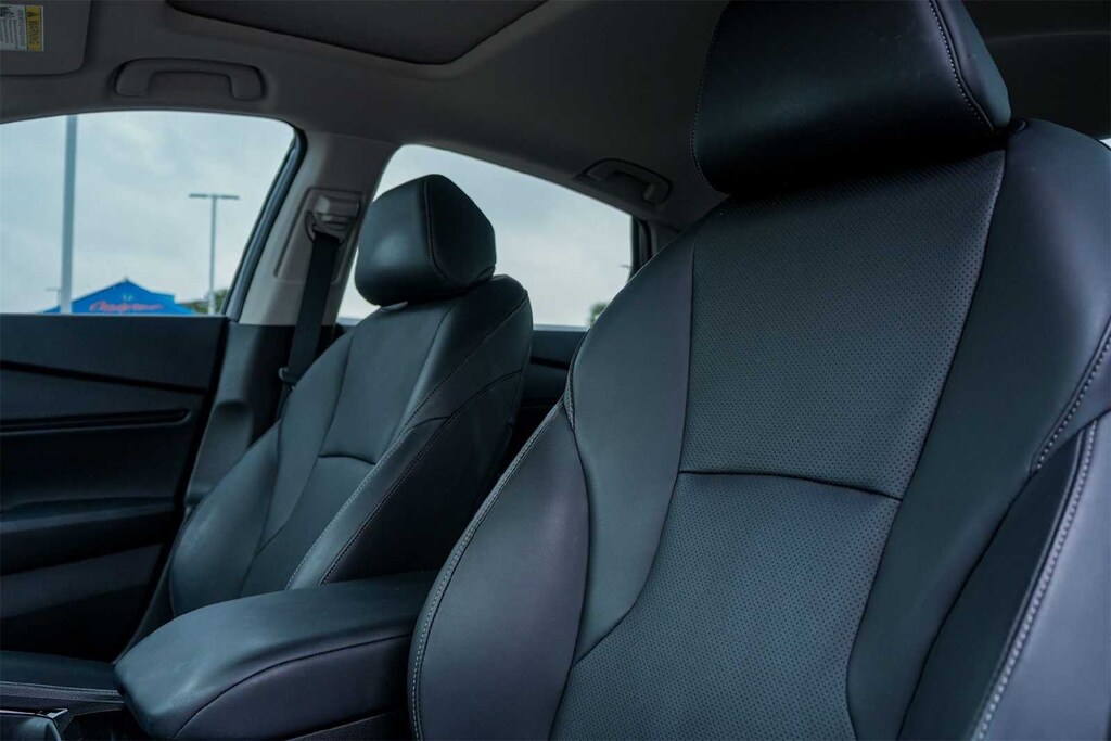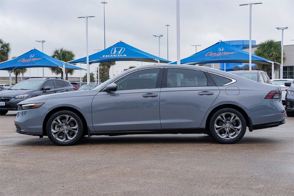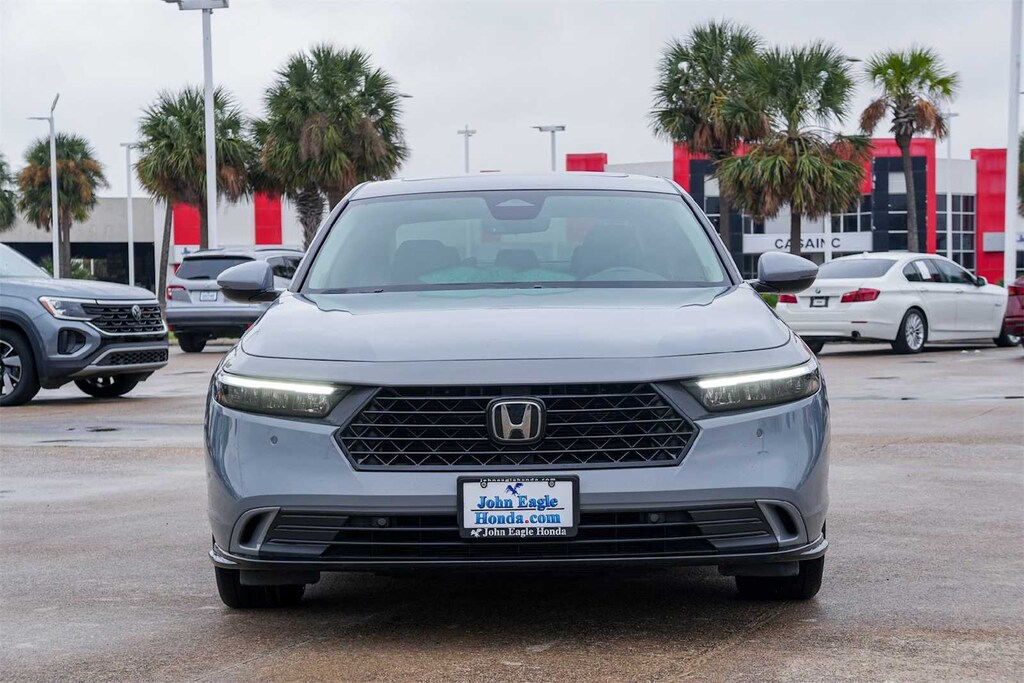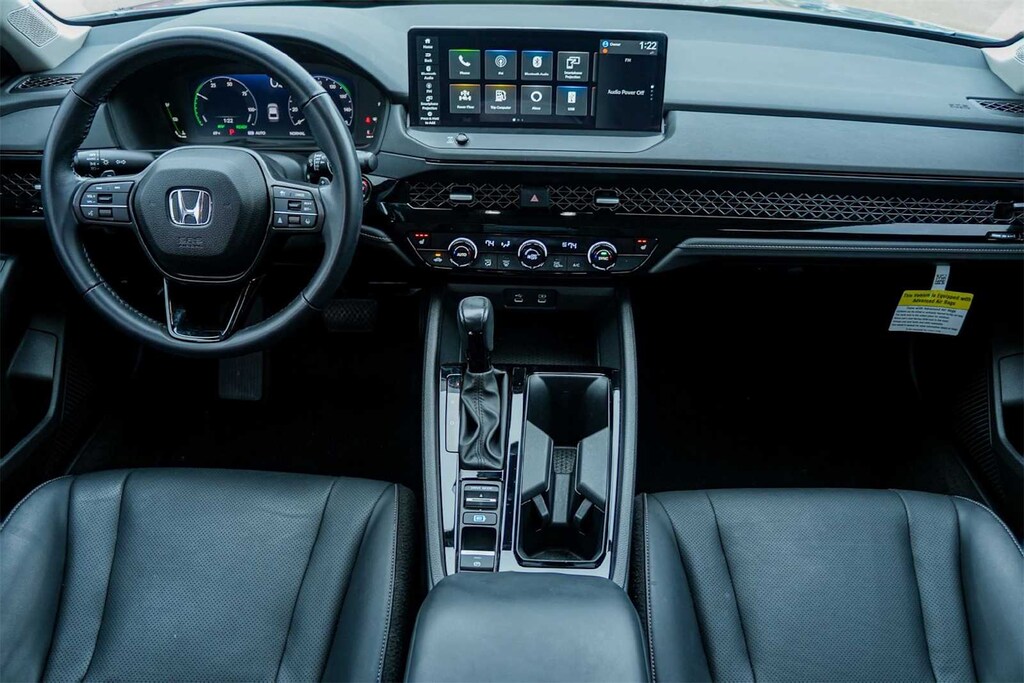 Certified. LOCAL TRADE, BLUETOOTH, NON-SMOKER, CARFAX ONE OWNER, Accord Hybrid EX-L, HondaTrue Certified Certified, 4D Sedan, 2.0L 16V DOHC, eCVT, FWD, Urban Gray Pearl, Black w/Leather-Trimmed Seat Trim, 4-Wheel Disc Brakes, 8 Speakers, ABS brakes, Adaptive Cruise Control: Adaptive Cruise Control (ACC) with Low-Speed Follow, Air Conditioning, Alloy wheels, AM/FM radio, Apple CarPlay/Android Auto, Auto High-beam Headlights, Auto-dimming Rear-View mirror, Automatic temperature control, Brake assist, Bumpers: body-color, Compass, Delay-off headlights, Driver door bin, Driver vanity mirror, Dual front impact airbags, Dual front side impact airbags, Electronic Stability Control, Emergency communication system: HondaLink, Exterior Parking Camera Rear, Four wheel independent suspension, Front anti-roll bar, Front Bucket Seats, Front Center Armrest, Front dual zone A/C, Front reading lights, Fully automatic headlights, Heated door mirrors, Heated Front Bucket Seats, Heated front seats, Illuminated entry, Knee airbag, Lane departure: Lane Keeping Assist System (LKAS) active, Leather Shift Knob, Leather steering wheel, Leather-Trimmed Seat Trim, Low tire pressure warning, Memory seat, Occupant sensing airbag, Outside temperature display, Overhead airbag, Overhead console, Panic alarm, Passenger door bin, Passenger vanity mirror, Power door mirrors, Power driver seat, Power moonroof, Power passenger seat, Power steering, Power windows, Radio data system, Radio: 180-Watt Audio System, Rear anti-roll bar, Rear reading lights, Rear seat center armrest, Rear side impact airbag, Rear window defroster, Remote keyless entry, Security system, Speed control, Speed-sensing steering, Speed-Sensitive Wipers, Split folding rear seat, Steering wheel mounted audio controls, Telescoping steering wheel, Tilt steering wheel, Traction control, Trip computer, Turn signal indicator mirrors, Variably intermittent wipers, Wheels: 17 x 7.5J Pewter Gray, REMOTE START, BLIND SPOT, COLLISION MITIGATION, LANE DEPARTURE, HEATED SEATS, Accord Hybrid EX-L, 4D Sedan, 2.0L 16V DOHC, eCVT, FWD, Urban Gray Pearl, Black w/Leather-Trimmed Seat Trim.