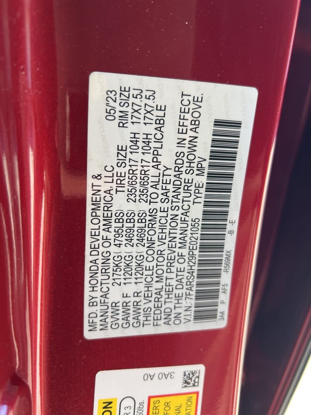 - Front tires: 235/65HR17.0