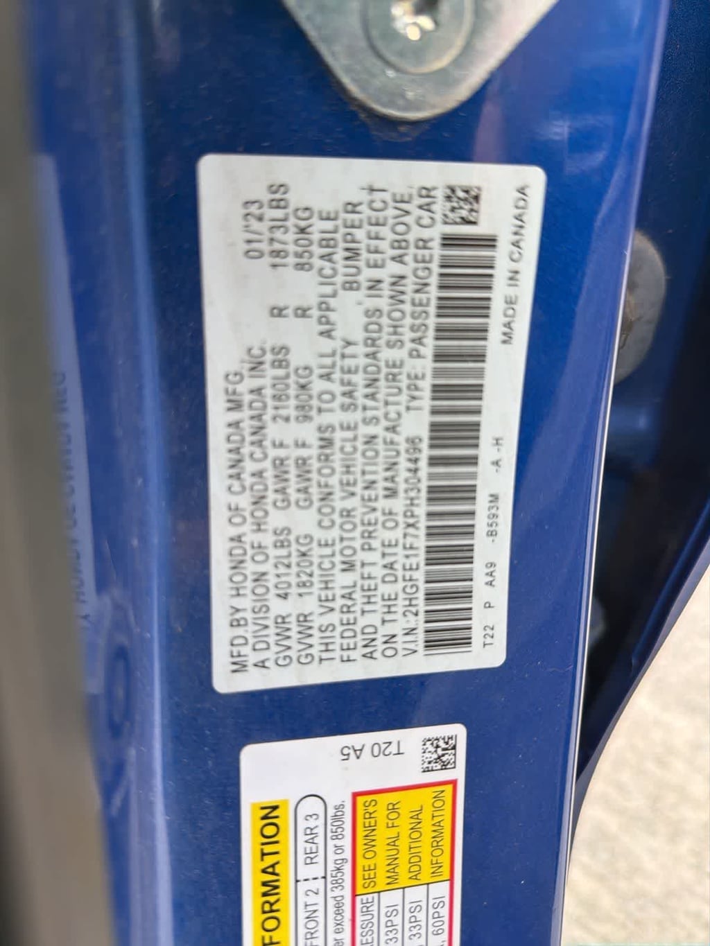 - 2HGFE1F7XPH304496