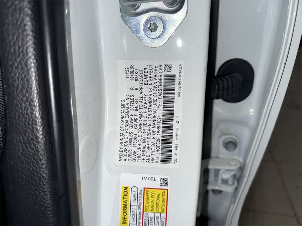 Certified. White 2023 Honda Civic Sport FWD CVT 2.0L I4 DOHC 16V i-VTEC Black w/Cloth Seat Trim.