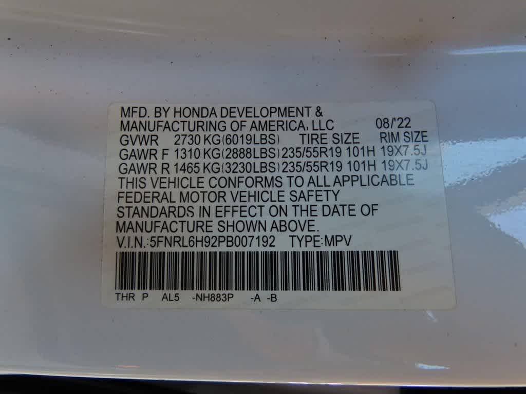 Leather Seats, Third Row Seat, Navigation, DVD, Moonroof, Power Liftgate, Rear Air, Heated Driver Seat, Back-Up Camera, Premium Sound System, Satellite Radio, iPod/MP3 Input, Onboard Communications System, Aluminum Wheels, Remote Engine Start. Honda Elite with Platinum White Pearl exterior and Black interior features a V6 Cylinder Engine with 280 HP at 6000 RPM*. Rear Spoiler, MP3 Player, Power Third Passenger Door, Rear Seat Audio Controls, Privacy Glass.