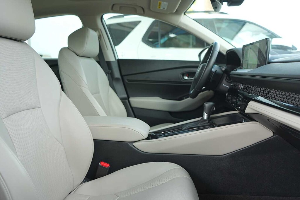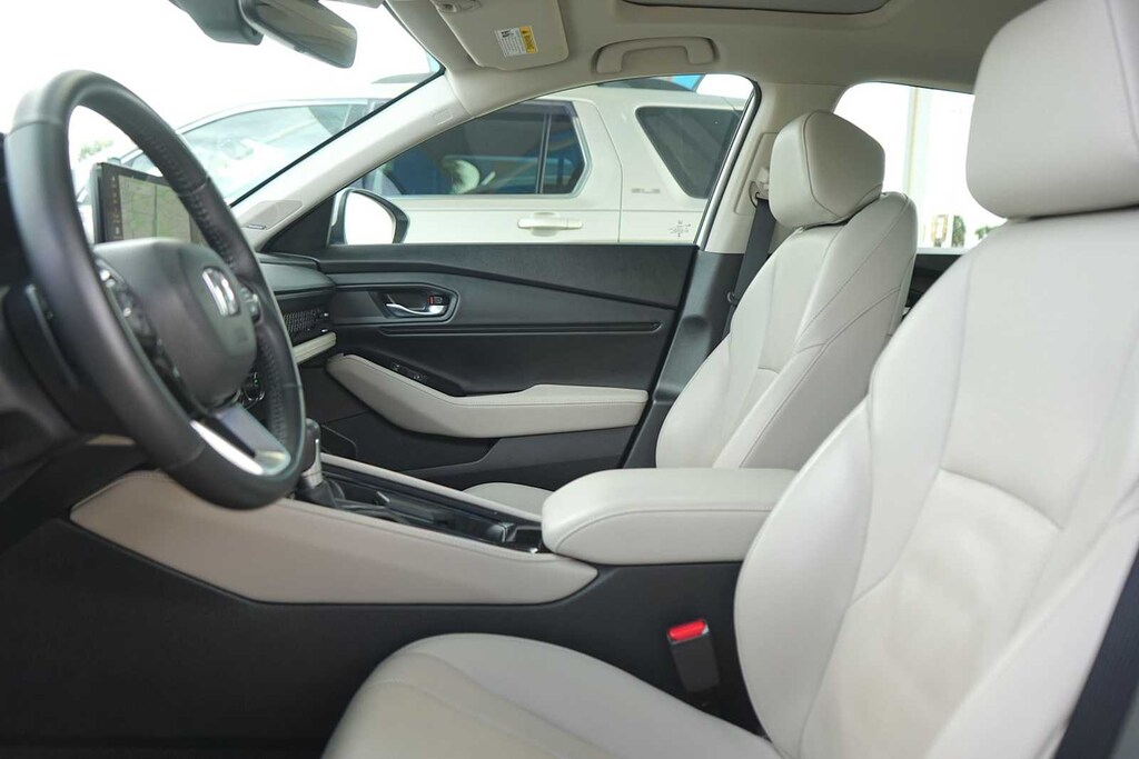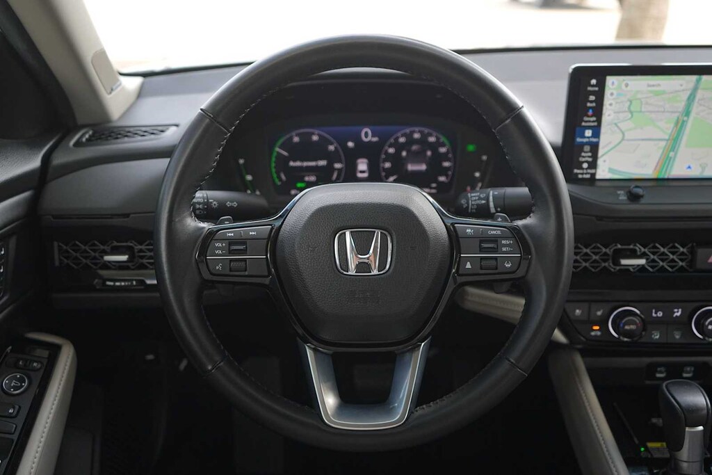 Certified. LOCAL TRADE, BLUETOOTH, CLEAN CARFAX, NON-SMOKER, CERTIFIED, CARFAX ONE OWNER, Service Records Available!, Remainder of Factory Warranty Still Applies!, ** LEATHER SEATS, ** SUNROOF, ** HEATED SEATS, ** REARVIEW CAMERA, ** NAVIGATION SYSTEM, ** KEYLESS ENTRY, ** APPLE CARPLAY, ** BLUETOOTH, HANDS-FREE, ** BLIND SPOT ALERT, ** KEYLESS START, ** PREMIUM WHEELS, ** PREMIUM SOUND SYSTEM, ** ANDROID AUTO, ** LANE DEPARTURE WARNING, ** SATELLITE RADIO, ** STEERING WHEEL CONTROLS, ** ALARM SYSTEM, ** WIFI HOTSPOT, ** AUXILIARY AUDIO INPUT, ** LOCAL TRADE-IN, ** LOCALLY OWNED AND SERVICED, Accord Hybrid Touring, HondaTrue Certified Certified, 4D Sedan, 2.0L 16V DOHC, eCVT, FWD, White, Gray w/Leather-Trimmed Seat Trim, 12 Speakers, 4-Wheel Disc Brakes, ABS brakes, Adaptive Cruise Control: Adaptive Cruise Control (ACC) with Low-Speed Follow, Adaptive suspension, Air Conditioning, Alloy wheels, AM/FM radio, Apple CarPlay/Android Auto, Auto High-beam Headlights, Auto-dimming Rear-View mirror, Automatic temperature control, Blind Spot Information (BSI) System warning, Bose Premium Sound System, Brake assist, Bumpers: body-color, Compass, Delay-off headlights, Driver door bin, Driver vanity mirror, Dual front impact airbags, Dual front side impact airbags, Electronic Stability Control, Emergency communication system: HondaLink, Exterior Parking Camera Rear, Four wheel independent suspension, Front anti-roll bar, Front Bucket Seats, Front Center Armrest, Front dual zone A/C, Front reading lights, Fully automatic headlights, Heads-Up Display, Heated & Ventilated Front Bucket Seats, Heated door mirrors, Heated front seats, Heated rear seats, Illuminated entry, Knee airbag, Lane departure: Lane Keeping Assist System (LKAS) active, Leather Shift Knob, Leather steering wheel, Leather-Trimmed Seat Trim, Low tire pressure warning, Memory seat, Navigation System, Occupant sensing airbag, Outside temperature display, Overhead airbag, Overhead console, Panic alarm, Passenger door bin, Passenger vanity mirror, Power door mirrors, Power driver seat, Power moonroof, Power passenger seat, Power steering, Power windows, Radio data system, Rain sensing wipers, Rear anti-roll bar, Rear reading lights, Rear seat center armrest, Rear side impact airbag, Rear window defroster, Remote keyless entry, Security system, Speed control, Speed-sensing steering, Speed-Sensitive Wipers, Split folding rear seat, Steering wheel mounted audio controls, Telescoping steering wheel, Tilt steering wheel, Traction control, Trip computer, Turn signal indicator mirrors, Variably intermittent wipers, Ventilated front seats, Wheels: 19 x 8.5J Berlina Black, Accord Hybrid Touring, 4D Sedan, 2.0L 16V DOHC, eCVT, FWD, White, Gray w/Leather-Trimmed Seat Trim.