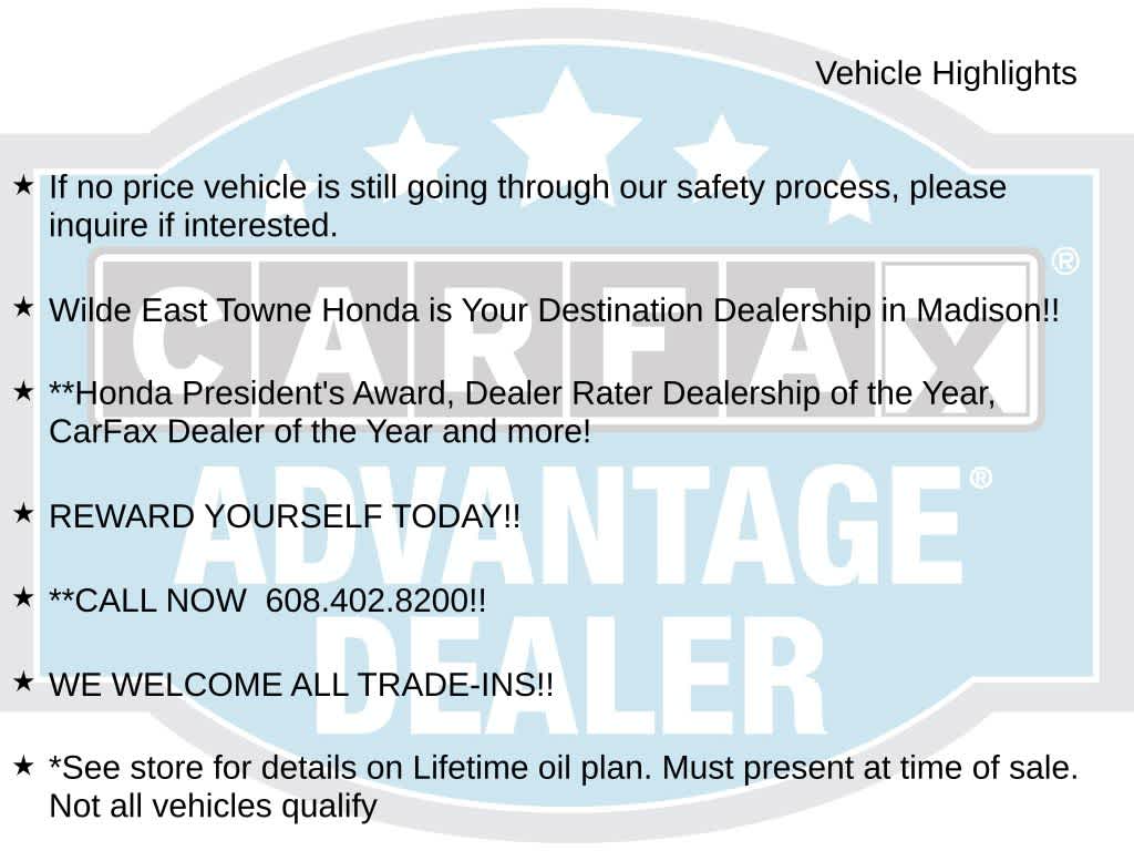 **Happy New Year!! Make your New Years Resolution to Spoil yourself with a New Car!!! To Celebrate were running $1000 over KBB Trade-in!! Stop in for your New or Used Honda, or anything in between and see why were Dealerrater Dealer of the Year! Honda Presidents Award Dealer, and Carfax Dealer of the year, come see for yourself why were rated one of Madisons Best and rated a 4.8/5 on 5000 reviews on Cars.com!!! Also Have Corporate discounts available, see a sales associate for details.