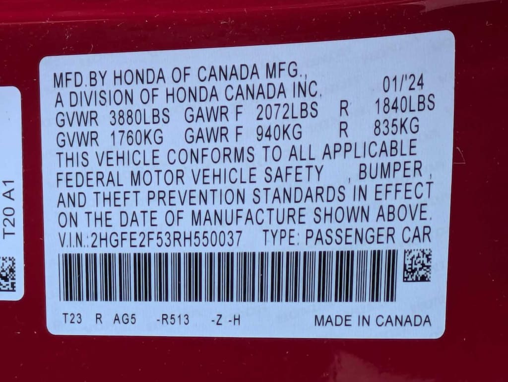 - 2HGFE2F53RH550037