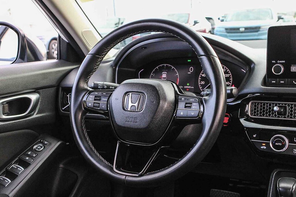 HondaTrue Certified Certified, Black Cloth, 4-Wheel Disc Brakes, 8 Speakers, ABS brakes, Adaptive Cruise Control: Adaptive Cruise Control (ACC) with Low-Speed Follow, Air Conditioning, Alloy wheels, AM/FM radio, Apple CarPlay/Android Auto, Auto High-beam Headlights, Automatic temperature control, Blind Spot Information (BSI) System warning, Brake assist, Bumpers: body-color, Cloth Seating Surfaces, Delay-off headlights, Driver door bin, Driver vanity mirror, Dual front impact airbags, Dual front side impact airbags, Electronic Stability Control, Emergency communication system: HondaLink, Exterior Parking Camera Rear, Four wheel independent suspension, Front anti-roll bar, Front Bucket Seats, Front Center Armrest, Front dual zone A/C, Front reading lights, Fully automatic headlights, Heated door mirrors, Heated Front Bucket Seats, Heated front seats, Illuminated entry, Knee airbag, Leather Shift Knob, Leather steering wheel, Low tire pressure warning, Occupant sensing airbag, Outside temperature display, Overhead airbag, Overhead console, Panic alarm, Passenger door bin, Passenger vanity mirror, Power door mirrors, Power moonroof, Power steering, Power windows, Radio data system, Radio: 180-Watt Audio System, Rear anti-roll bar, Rear seat center armrest, Rear side impact airbag, Rear window defroster, Remote keyless entry, Security system, Speed control, Speed-sensing steering, Split folding rear seat, Steering wheel mounted audio controls, Tachometer, Telescoping steering wheel, Tilt steering wheel, Traction control, Trip computer, Variably intermittent wipers, and Wheels: 17 Alloy w/Gloss Black Inserts. Black Cloth. 1.5L I4 DOHC 16V CVT FWD