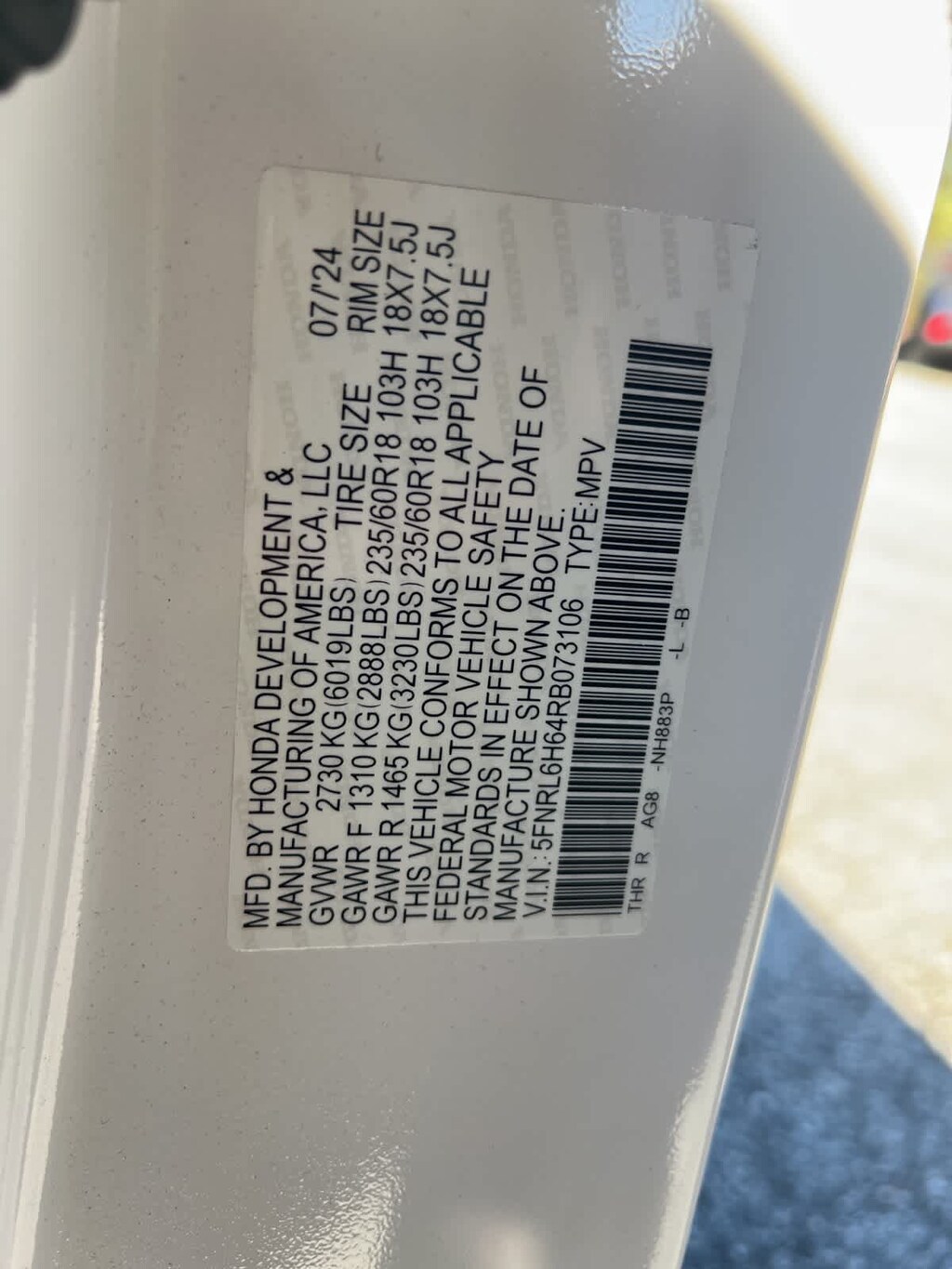 - 5FNRL6H64RB073106