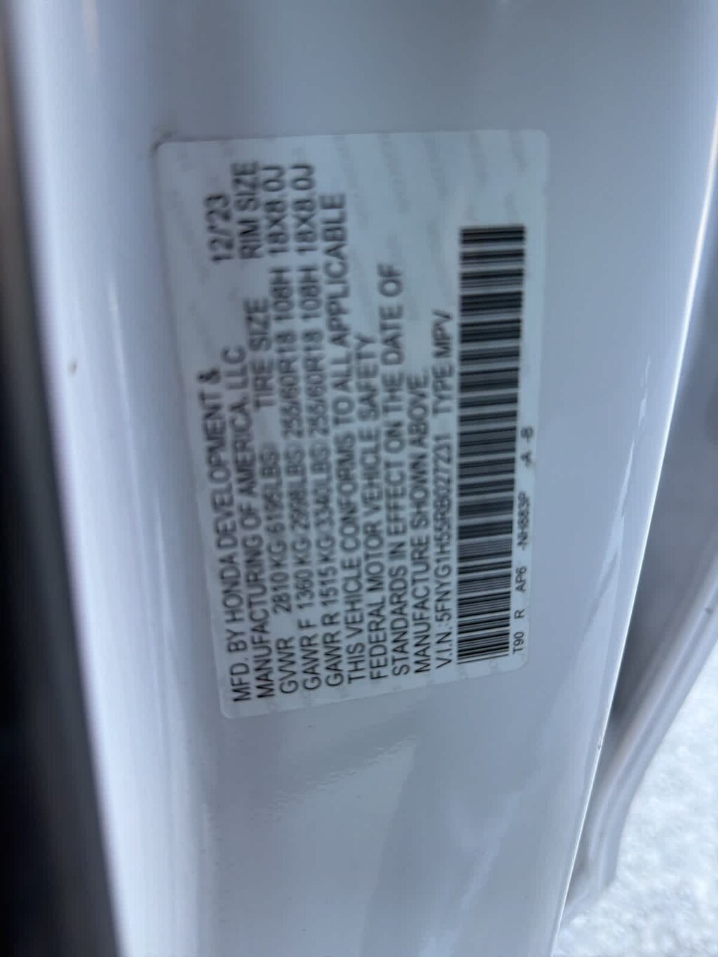 - 5FNYG1H55RB027231