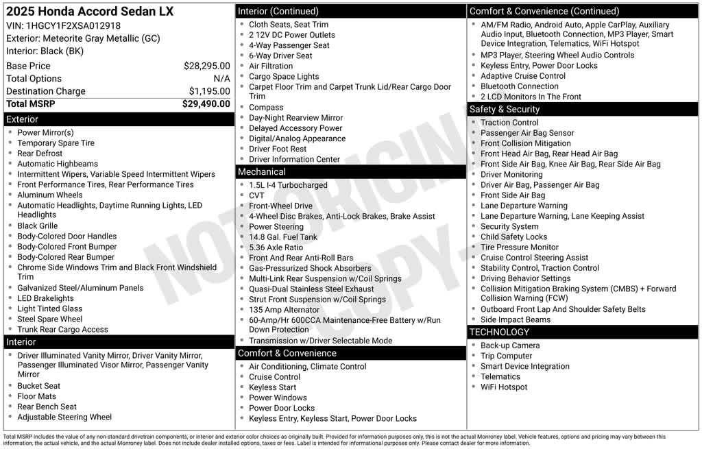 CARFAX One-Owner. Clean CARFAX. 2025 Honda Accord LX Certified. HondaTrue Certified Details: