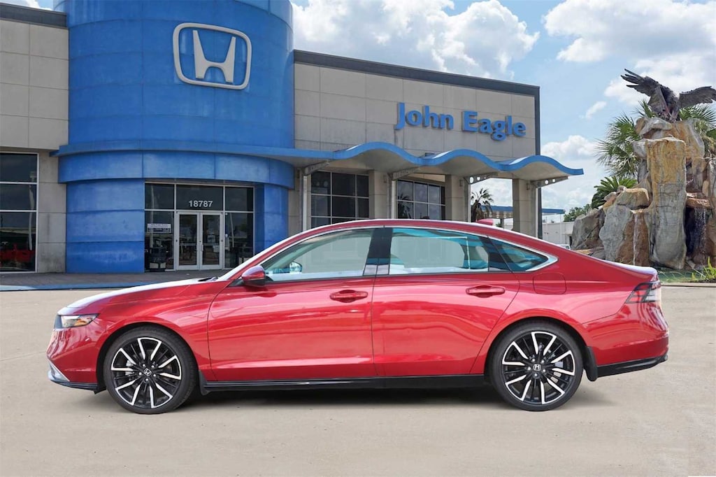 Certified. LOCAL TRADE, BLUETOOTH, CLEAN CARFAX, NON-SMOKER, CARFAX ONE OWNER, ** LEATHER SEATS, Accord Hybrid Touring, HondaTrue Certified Certified, 4D Sedan, 2.0L I4 DOHC 16V, eCVT, FWD, Red, Gray Leather, 12 Speakers, 4-Wheel Disc Brakes, ABS brakes, Adaptive Cruise Control: Adaptive Cruise Control (ACC) with Low-Speed Follow, Air Conditioning, Alloy wheels, AM/FM radio, Apple CarPlay/Android Auto, Auto High-beam Headlights, Auto-dimming Rear-View mirror, Automatic temperature control, Blind Spot Information (BSI) System warning, Bose Premium Sound System, Brake assist, Bumpers: body-color, Compass, Delay-off headlights, Driver door bin, Driver vanity mirror, Dual front impact airbags, Dual front side impact airbags, Electronic Stability Control, Emergency communication system: HondaLink, Exterior Parking Camera Rear, Four wheel independent suspension, Front anti-roll bar, Front Bucket Seats, Front Center Armrest, Front dual zone A/C, Front reading lights, Fully automatic headlights, Heads-Up Display, Heated & Ventilated Front Bucket Seats, Heated door mirrors, Heated front seats, Heated rear seats, Heated steering wheel, Illuminated entry, Knee airbag, Lane departure: Lane Keeping Assist System (LKAS) active, Leather Shift Knob, Leather steering wheel, Leather-Trimmed Seat Trim, Low tire pressure warning, Memory seat, Navigation System, Occupant sensing airbag, Outside temperature display, Overhead airbag, Overhead console, Panic alarm, Passenger door bin, Passenger vanity mirror, Power door mirrors, Power driver seat, Power moonroof, Power passenger seat, Power steering, Power windows, Radio data system, Rain sensing wipers, Rear anti-roll bar, Rear reading lights, Rear seat center armrest, Rear side impact airbag, Rear window defroster, Remote keyless entry, Security system, Speed control, Speed-sensing steering, Speed-Sensitive Wipers, Split folding rear seat, Steering wheel mounted audio controls, Telescoping steering wheel, Tilt steering wheel, Traction control, Trip computer, Turn signal indicator mirrors, Variably intermittent wipers, Ventilated front seats, Wheels: 19 x 8.5J Berlina Black, Accord Hybrid Touring, 4D Sedan, 2.0L I4 DOHC 16V, eCVT, FWD, Red, Gray Leather.