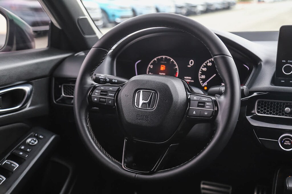 HondaTrue Certified Certified, Black Leather seat Trim, 4-Wheel Disc Brakes, 8 Speakers, ABS brakes, Adaptive Cruise Control: Adaptive Cruise Control (ACC) with Low-Speed Follow, Air Conditioning, Alloy wheels, AM/FM radio, Apple CarPlay/Android Auto, Auto High-beam Headlights, Automatic temperature control, Blind Spot Information (BSI) System warning, Brake assist, Bumpers: body-color, Cloth/Leatherette Seating Surfaces, Delay-off headlights, Driver door bin, Driver vanity mirror, Dual front impact airbags, Dual front side impact airbags, Electronic Stability Control, Emergency communication system: HondaLink, Exterior Parking Camera Rear, Four wheel independent suspension, Front anti-roll bar, Front Bucket Seats, Front Center Armrest, Front reading lights, Fully automatic headlights, Heated door mirrors, Illuminated entry, Knee airbag, Leather Shift Knob, Leather steering wheel, Low tire pressure warning, Occupant sensing airbag, Outside temperature display, Overhead airbag, Panic alarm, Passenger door bin, Passenger vanity mirror, Power door mirrors, Power steering, Power windows, Radio data system, Radio: 180-Watt Audio System, Rear anti-roll bar, Rear seat center armrest, Rear side impact airbag, Rear window defroster, Remote keyless entry, Security system, Speed control, Speed-sensing steering, Split folding rear seat, Steering wheel mounted audio controls, Tachometer, Telescoping steering wheel, Tilt steering wheel, Traction control, Trip computer, and Wheels: 18 Gloss Black Alloy. Black Leather seat Trim. 2.0L I4 DOHC 16V CVT FWD
