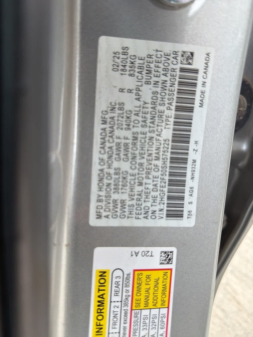 - 2HGFE2F50SH575225