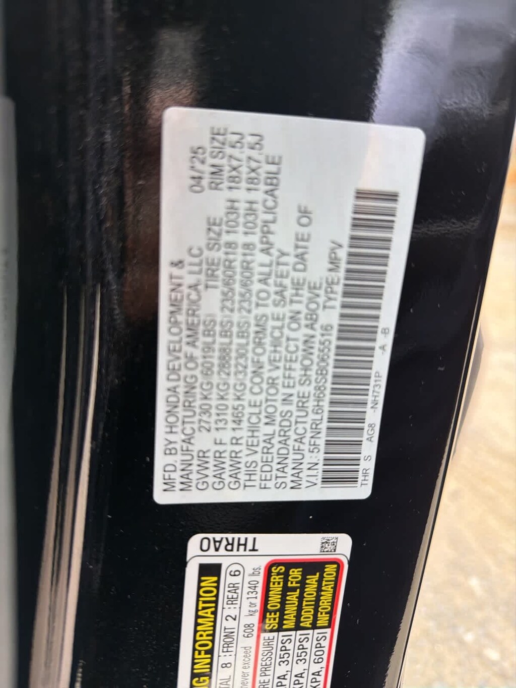 - 5FNRL6H68SB065516