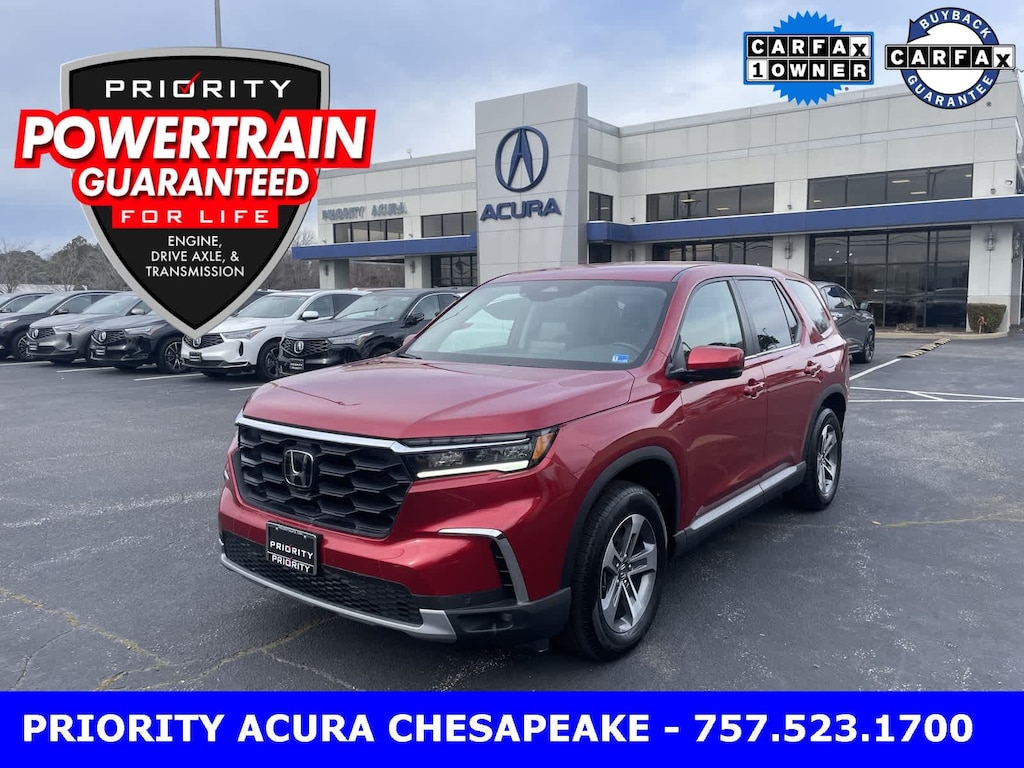 Three-row versatility, confident AWD capability, and Honda reliability define this 2025 Pilot EX-L. Finished in Radiant Red Metallic II over a black leather interior, it blends family-friendly practicality with clean, modern styling. A one-owner, clean Carfax example with just 12,761 miles, backed by a Lifetime Powertrain Warranty valid anywhere in the U.S. and offered by Priority Acura Chesapeake, this Pilot stands out as a smart long-term SUV choice.