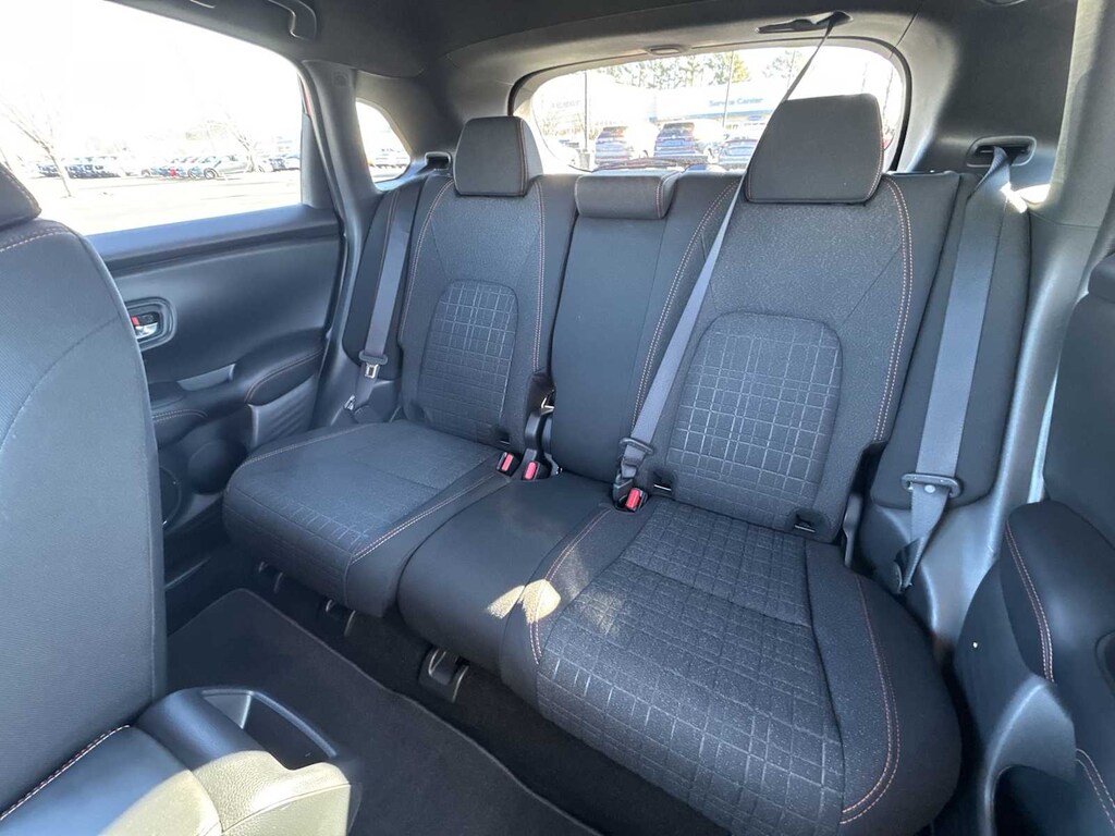 HR-V Sport is nicely equipped with HR-V Sport, HondaTrue Certified Certified, 4D Sport Utility, 2.0L I4 DOHC 16V i-VTEC, CVT, AWD, Platinum White Pearl, Black w/Cloth Seat Trim, 4-Wheel Disc Brakes, 6 Speakers, ABS brakes, Adaptive Cruise Control: Adaptive Cruise Control (ACC) with Low-Speed Follow, Air Conditioning, Alloy wheels, AM/FM radio, Apple CarPlay/Android Auto, Auto High-beam Headlights, Automatic temperature control, Blind Spot Information (BSI) System warning, Brake assist, Bumpers: body-color, Cloth Seat Trim, Compass, Delay-off headlights, Driver door bin, Driver vanity mirror, Dual front impact airbags, Dual front side impact airbags, Electronic Stability Control, Exterior Parking Camera Rear, Four wheel independent suspension, Front anti-roll bar, Front Bucket Seats, Front Center Armrest, Front reading lights, Fully automatic headlights, Heated door mirrors, Heated Front Bucket Seats, Heated front seats, Illuminated entry, Knee airbag, Low tire pressure warning, Occupant sensing airbag, Outside temperature display, Overhead airbag, Panic alarm, Passenger door bin, Passenger vanity mirror, Power door mirrors, Power steering, Power windows, Radio data system, Rear anti-roll bar, Rear reading lights, Rear side impact airbag, Rear window defroster, Rear window wiper, Remote keyless entry, Security system, Speed control, Speed-sensing steering, Split folding rear seat, Spoiler, Steering wheel mounted audio controls, Tachometer, Telescoping steering wheel, Tilt steering wheel, Traction control, Trip computer, Turn signal indicator mirrors, Variably intermittent wipers, and Wheels: 18 Gloss Black Alloy.