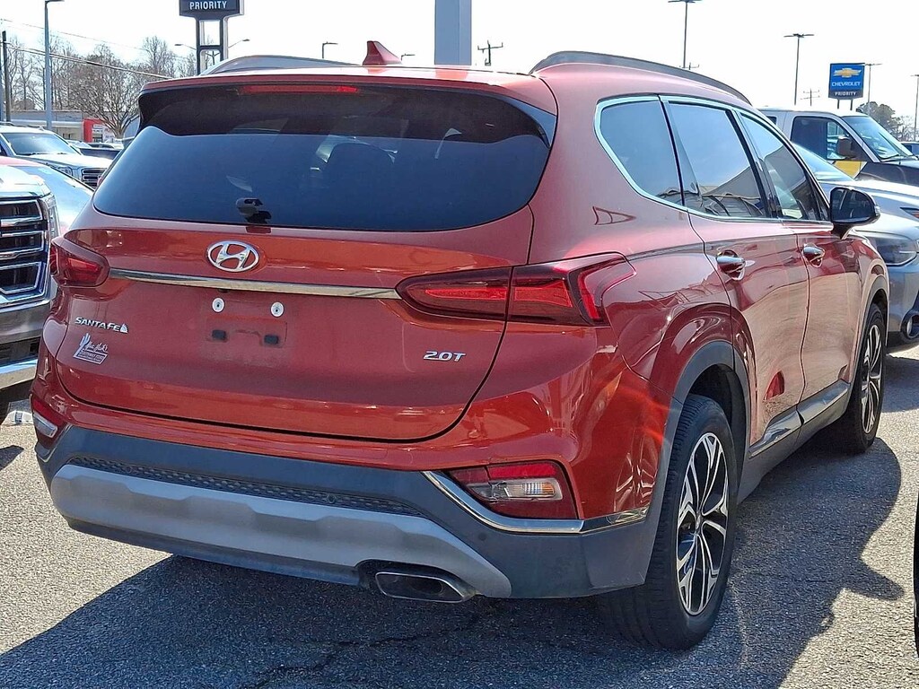 2019 Hyundai Ultimate Santa Fe Lava Orange Navigation, Leather, Backup Camera, ANDROID AUTO AND APPLE CARPLAY, BLUETOOTH PHONE AND AUDIO, Santa Fe Ultimate, 4D Sport Utility, 2.0L Turbocharged, FWD, Lava Orange, Black Leather. Certified. Odometer is 13498 miles below market average! Certification Program Details: When you choose a certified used vehicle less than 10 model years old and with less than 100,000 miles, you??ll get 6-month/6,000-mile * limited bumper-to-bumper warranty coverage with no deductible.