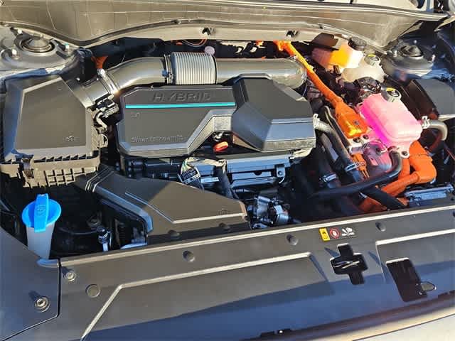 Ready for adventure, our One Owner, No Accidents Reported 2023 Hyundai Santa Fe Hybrid Blue AWD in Portofino Gray is great for going green! Powered by a TurboCharged 1.6 Liter 4 Cylinder and an Electric Motor providing a combined 226hp a 6 Speed SHIFTRONIC Automatic transmission for sporty fun. This All Wheel Drive SUV also shows off convenient capability and scores nearly 36mpg on the highway. Rugged and refined, our Santa Fe has a confident look with LED lighting, a hands-free liftgate, roof rails, alloy wheels, a rear spoiler, and heated power mirrors with built-in turn signals.