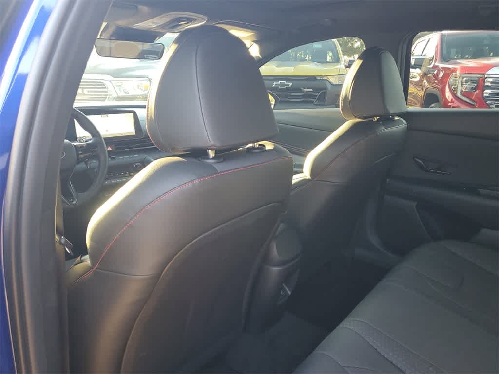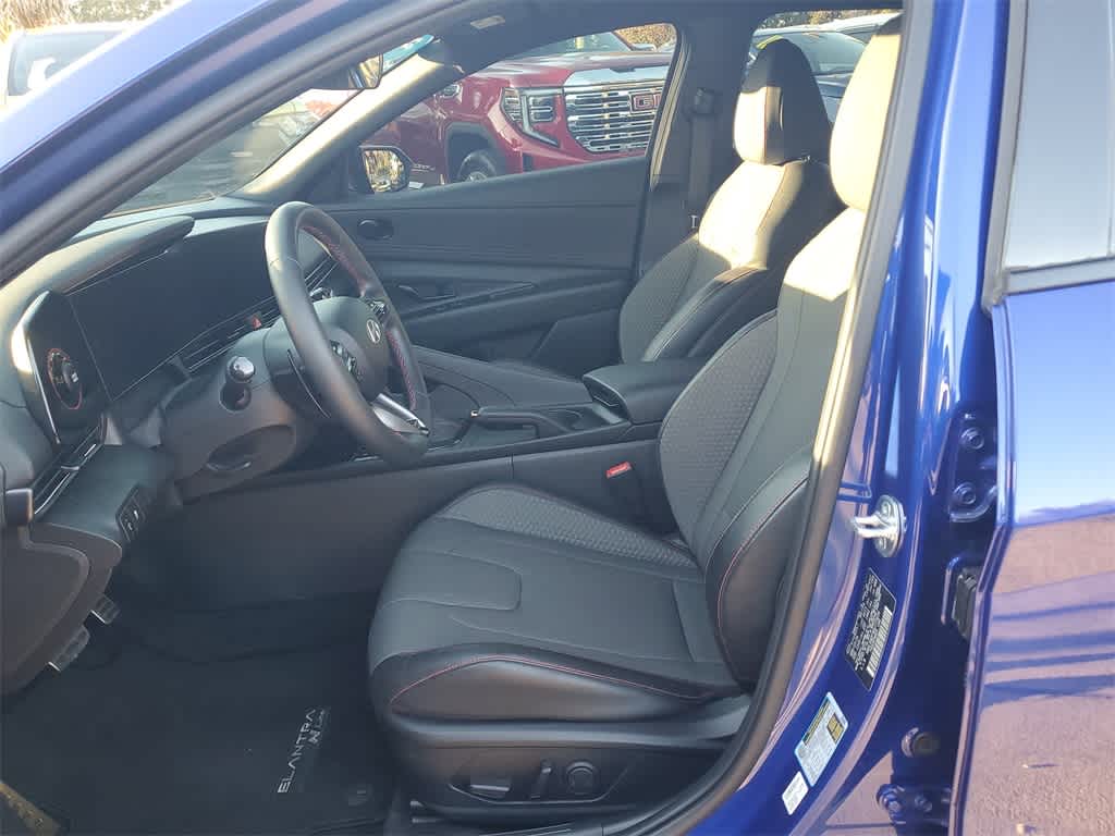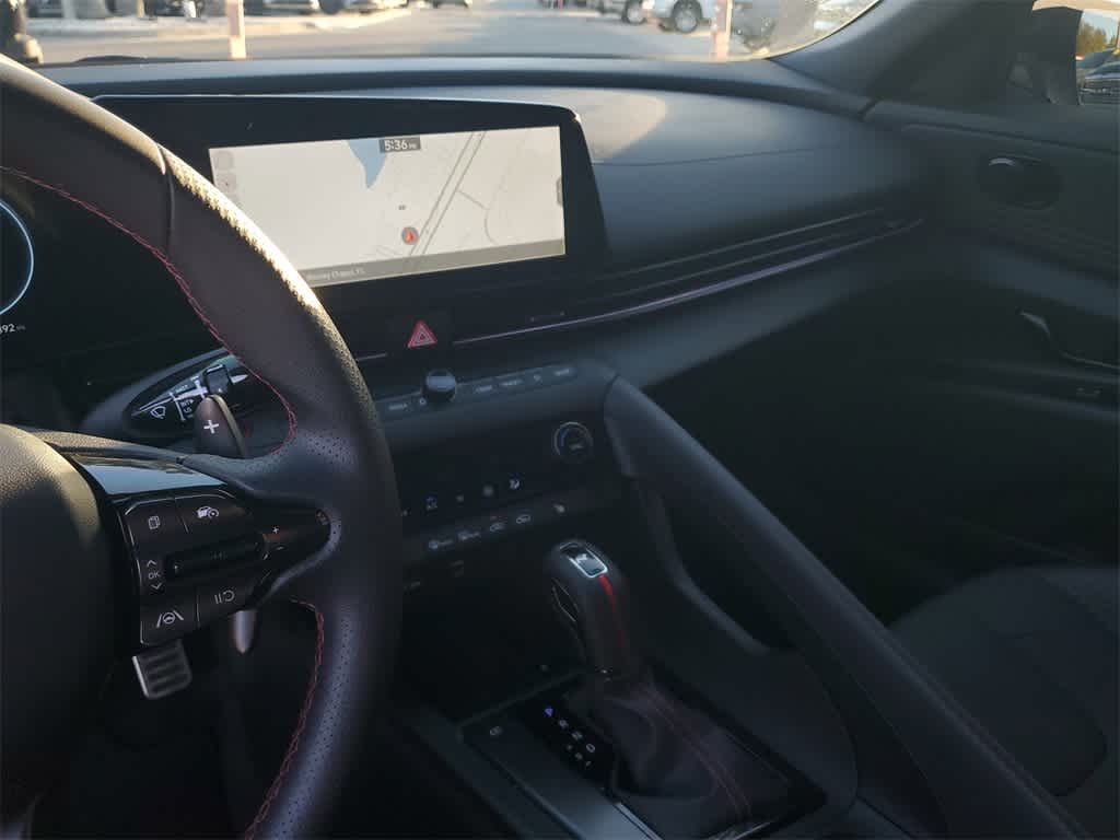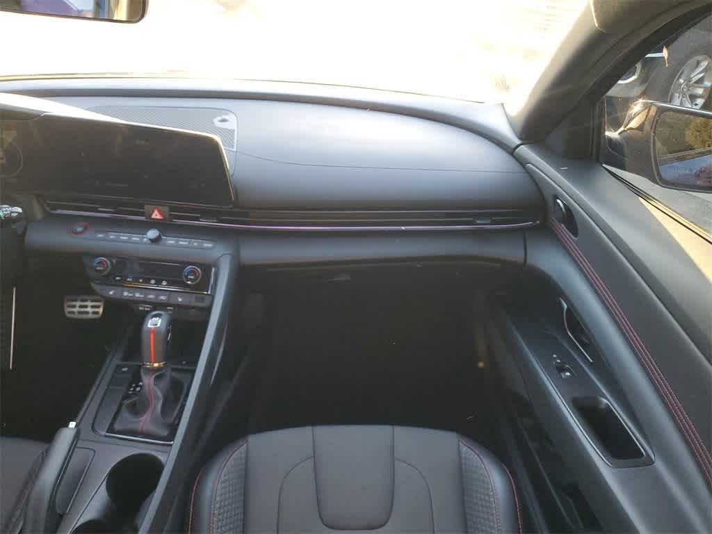 CARFAX One-Owner. Clean CARFAX. Certified. Intense Blue 2024 Hyundai Elantra N Line **CERTIFIED** FWD Automatic I4 28/35 City/Highway MPG **FAST AND FUN WITH STYLE**, **ONE OWNER**, **CLEAN CARFAX**, **CERTIFIED**, **MOONROOF / SUNROOF**, **LEATHER**, **NAVI / NAVIGATION /GPS**, **APPLE CAR PLAY**, 18 x 7.5J Alloy Wheels, 4-Wheel Disc Brakes, 8 Speakers, ABS brakes, Air Conditioning, Alloy wheels, AM/FM radio: SiriusXM, Apple CarPlay & Android Auto, Auto High-beam Headlights, Automatic temperature control, Brake assist, Bumpers: body-color, Cargo Net, Carpeted Floor Mats, Combination Cloth & Leatherette Seating Surfaces, Delay-off headlights, Driver door bin, Driver vanity mirror, Dual front impact airbags, Dual front side impact airbags, Electronic Stability Control, Emergency communication system: Bluelink+, Exterior Parking Camera Rear, First Aid Kit, Four wheel independent suspension, Front anti-roll bar, Front Bucket Seats, Front Center Armrest, Front dual zone A/C, Front reading lights, Fully automatic headlights, Heated door mirrors, Heated front seats, Heated Front Sport Bucket Seats, Illuminated entry, Leather Shift Knob, Leather steering wheel, Low tire pressure warning, Navigation System, Occupant sensing airbag, Option Group 01, Outside temperature display, Overhead airbag, Overhead console, Panic alarm, Passenger door bin, Passenger vanity mirror, Power door mirrors, Power driver seat, Power moonroof, Power steering, Power windows, Radio: AM/FM/HD/SiriusXM Display Audio, Rear anti-roll bar, Rear Bumper Applique, Rear seat center armrest, Rear side impact airbag, Rear window defroster, Remote keyless entry, Reversible Cargo Tray, Security system, Speed control, Speed-sensing steering, Split folding rear seat, Spoiler, Sport steering wheel, Steering wheel mounted audio controls, Tachometer, Telescoping steering wheel, Tilt steering wheel, Traction control, Trip computer, Turn signal indicator mirrors, Variably intermittent wipers, Wheel Locks.