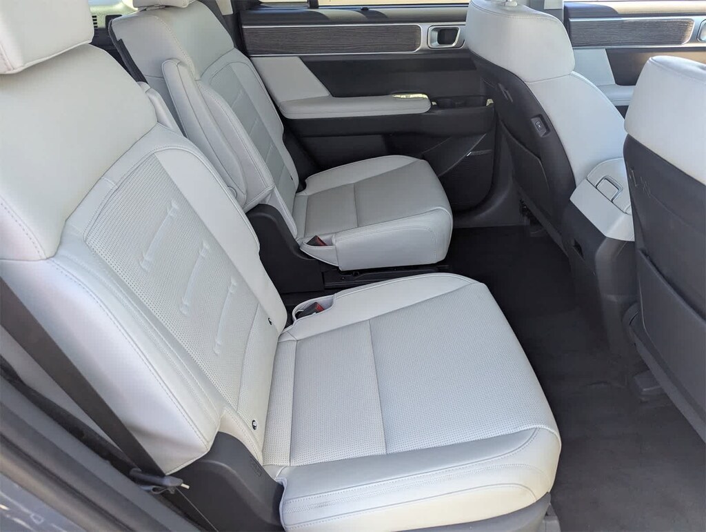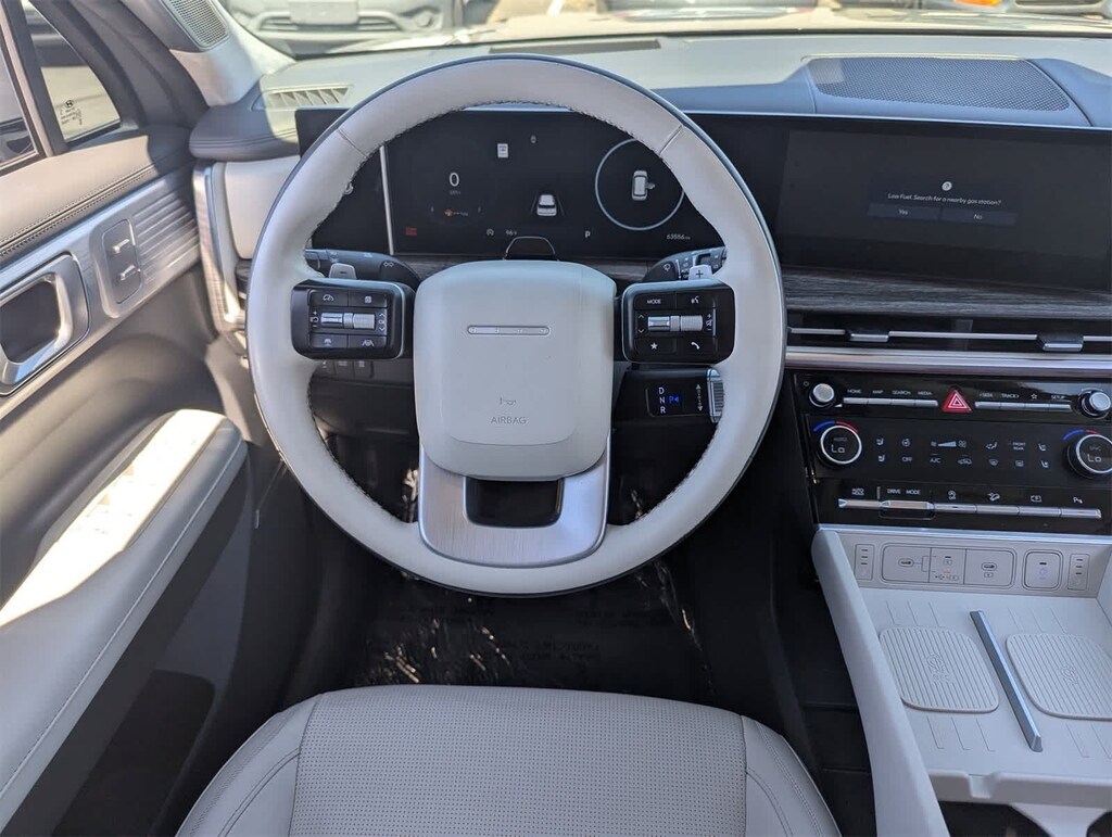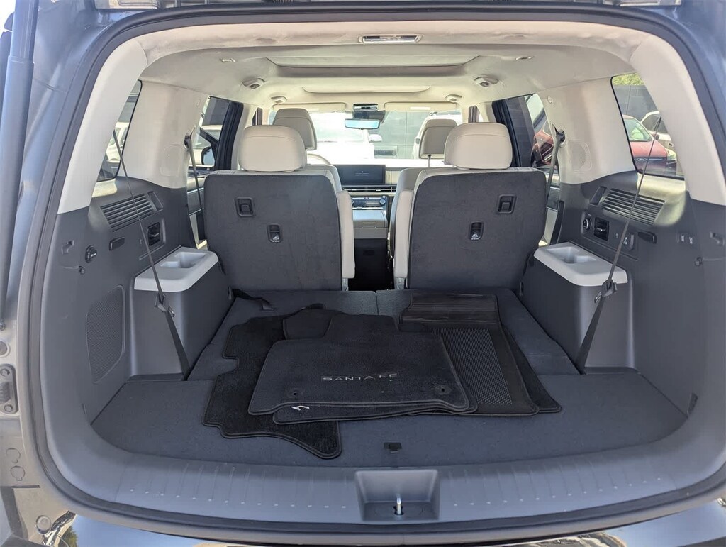 Option Group 01, Lithia 60 Day/3,000 mile Warranty Certified, Gray Leather, 12 Speakers, 3rd row seats: bench, 4-Wheel Disc Brakes, ABS brakes, Air Conditioning, Alloy wheels, AM/FM radio: SiriusXM, Apple CarPlay & Android Auto, Auto High-beam Headlights, Auto-dimming Rear-View mirror, Automatic temperature control, Axle Ratio: 3.316, Brake assist, Bumpers: body-color, Cargo Cover/Screen, Carpeted Floor Mats, Delay-off headlights, Driver door bin, Driver vanity mirror, Dual front impact airbags, Dual front side impact airbags, Electronic Stability Control, Emergency communication system, Exterior Parking Camera Rear, First Aid Kit, Four wheel independent suspension, Front anti-roll bar, Front Bucket Seats, Front Center Armrest, Front dual zone A/C, Front reading lights, Fully automatic headlights, Garage door transmitter: HomeLink, Heads-Up Display, Heated & Ventilated Front Bucket Seats, Heated door mirrors, Heated front seats, Heated rear seats, Heated steering wheel, Illuminated entry, Knee airbag, Leather steering wheel, Low tire pressure warning, Memory seat, Navigation System, Occupant sensing airbag, Outside temperature display, Overhead airbag, Overhead console, Panic alarm, Passenger door bin, Passenger vanity mirror, Power door mirrors, Power driver seat, Power Liftgate, Power moonroof, Power passenger seat, Power steering, Power windows, Quilted Premium Nappa Leather Seat Trim, Radio: AM/FM/HD Bose Premium Audio System, Rain sensing wipers, Rear anti-roll bar, Rear side impact airbag, Rear window defroster, Rear window wiper, Remote keyless entry, Security system, Speed control, Speed-sensing steering, Split folding rear seat, Spoiler, Steering wheel mounted audio controls, Tachometer, Telescoping steering wheel, Tilt steering wheel, Traction control, Trip computer, Turn signal indicator mirrors, Variably intermittent wipers, Ventilated front seats, Wheel Locks, and Wheels: 21 x 8.5J Unique Dark Finish Alloy. CARFAX One-Owner. Certified. Hampton Gray 2024 Hyundai Santa Fe Calligraphy Priced below KBB Fair Purchase Price! FWD Shiftronic 2.5L I4 Gray Leather.