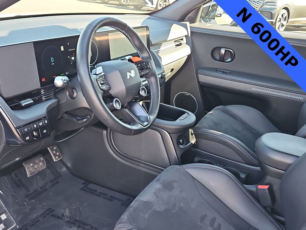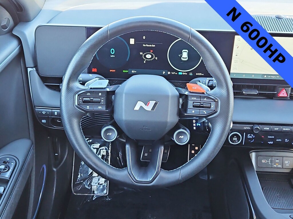 THIS VEHICLE IS EQUIPPED WITH THE FOLLOWING OPTIONS AND FEATURES: Option Group 01, Hyundai Certified Used Vehicles Certified, 4-Wheel Disc Brakes, 8 Speakers, ABS brakes, Adaptive suspension, Air Conditioning, Alloy wheels, AM/FM radio: SiriusXM, Apple CarPlay & Android Auto, Auto High-beam Headlights, Auto-dimming Rear-View mirror, Automatic temperature control, Bodyside moldings, Brake assist, Bumpers: body-color, Cargo Net, Delay-off headlights, Driver door bin, Driver vanity mirror, Dual front impact airbags, Dual front side impact airbags, Eco Alcantara/H-Tex Seating Surfaces, Electronic Stability Control, Emergency communication system: Bluelink+, Fixed Console Carpeted Floor Mats, Four wheel independent suspension, Front anti-roll bar, Front Bucket Seats, Front Center Armrest w/Storage, Front dual zone A/C, Front reading lights, Fully automatic headlights, Garage door transmitter: HomeLink, Heated & Ventilated N Lightweight Sport Bucket Seats, Heated door mirrors, Heated front seats, Heated steering wheel, Illuminated entry, Leather steering wheel, Low tire pressure warning, Navigation System, Occupant sensing airbag, Outside temperature display, Overhead airbag, Panic alarm, Passenger door bin, Passenger vanity mirror, Power door mirrors, Power Liftgate, Power steering, Power windows, Radio: AM/FM/SiriusXM/HD Display Audio System, Rain sensing wipers, Rear anti-roll bar, Rear reading lights, Rear seat center armrest, Rear window defroster, Rear window wiper, Remote keyless entry, Security system, Speed control, Speed-sensing steering, Split folding rear seat, Spoiler, Steering wheel mounted audio controls, Telescoping steering wheel, Tilt steering wheel, Traction control, Trip computer, Turn signal indicator mirrors, Variably intermittent wipers, Ventilated front seats, and Wheels: 21 x 9.5J Forged N Alloy. 84/72 City/Highway MPG