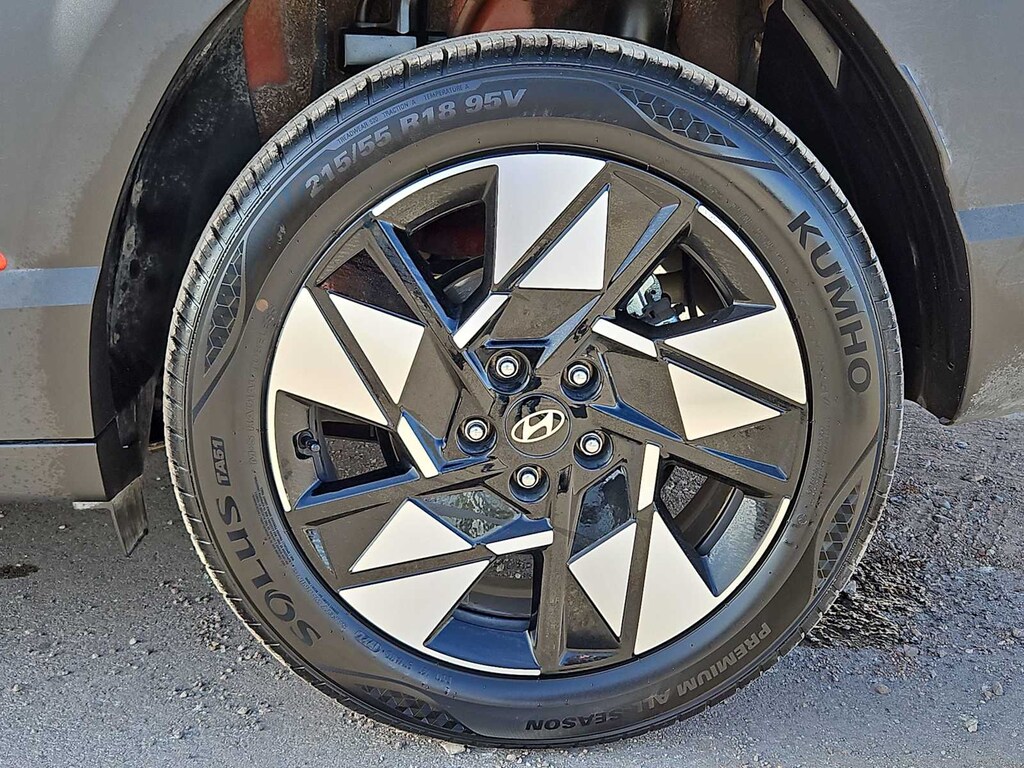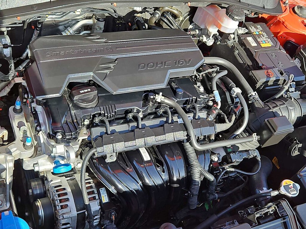 4-Wheel Disc Brakes, 6 Speakers, ABS brakes, Air Conditioning, Alloy wheels, AM/FM radio: SiriusXM, Apple CarPlay & Android Auto, Auto High-beam Headlights, Automatic temperature control, Brake assist, Bumpers: body-color, Cloth Seat Trim, Delay-off headlights, Driver door bin, Driver vanity mirror, Dual front impact airbags, Dual front side impact airbags, Electronic Stability Control, Emergency communication system: Bluelink+, Exterior Parking Camera Rear, Front anti-roll bar, Front Bucket Seats, Front Center Armrest, Front dual zone A/C, Front reading lights, Front wheel independent suspension, Fully automatic headlights, Heated door mirrors, Illuminated entry, Leather steering wheel, Low tire pressure warning, Occupant sensing airbag, Outside temperature display, Overhead airbag, Panic alarm, Passenger door bin, Passenger vanity mirror, Power door mirrors, Power driver seat, Power steering, Power windows, Radio: AM/FM/HD Radio/SiriusXM Audio System, Rear seat center armrest, Rear window defroster, Rear window wiper, Remote keyless entry, Security system, Speed control, Speed-sensing steering, Split folding rear seat, Spoiler, Steering wheel mounted audio controls, Tachometer, Telescoping steering wheel, Tilt steering wheel, Traction control, Trip computer, Turn signal indicator mirrors, Variably intermittent wipers, Wheels: 18 x 7.0J Glossy Black Alloy.