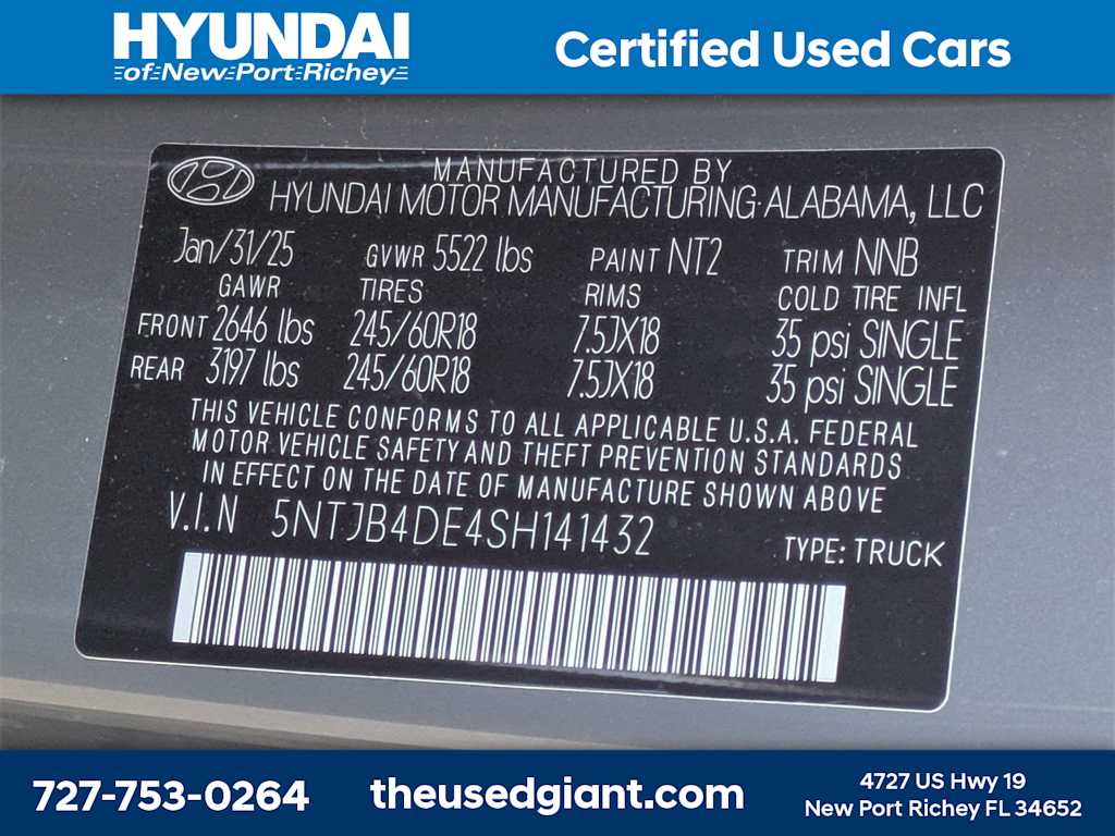 CARFAX One-Owner. Clean CARFAX. 2025 Hyundai Santa Cruz SEL FWD 2.5L I4 8-Speed Automatic with SHIFTRONIC Certified. Hyundai Certified Used Vehicles Details: