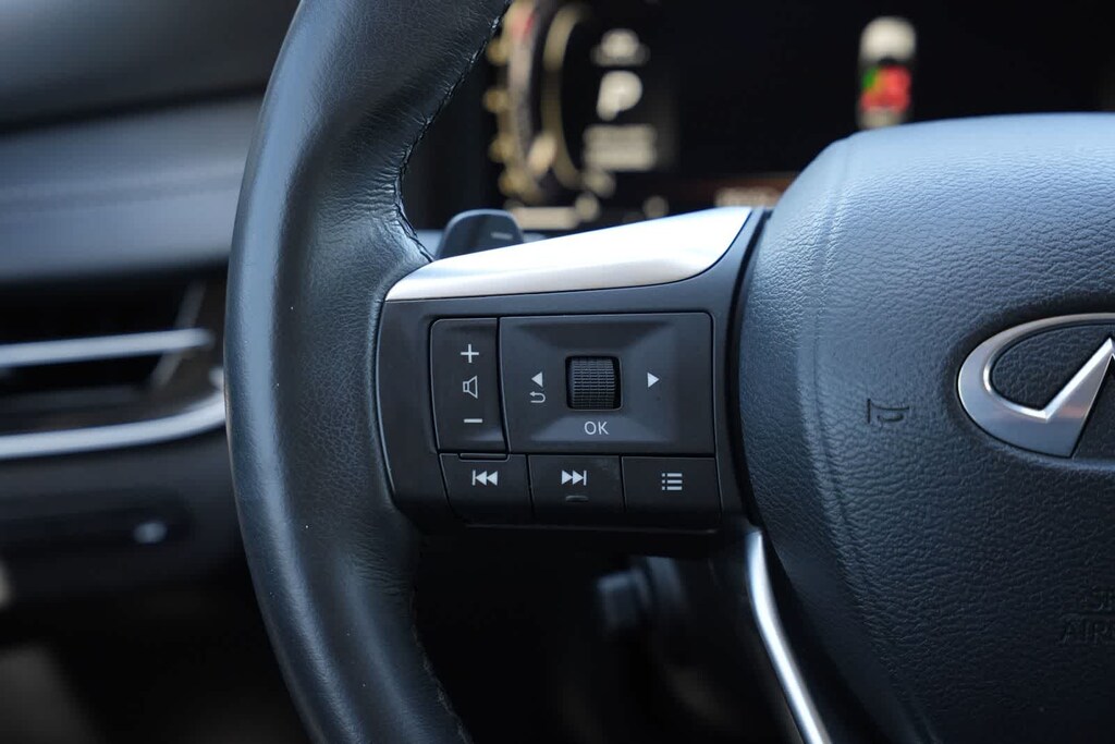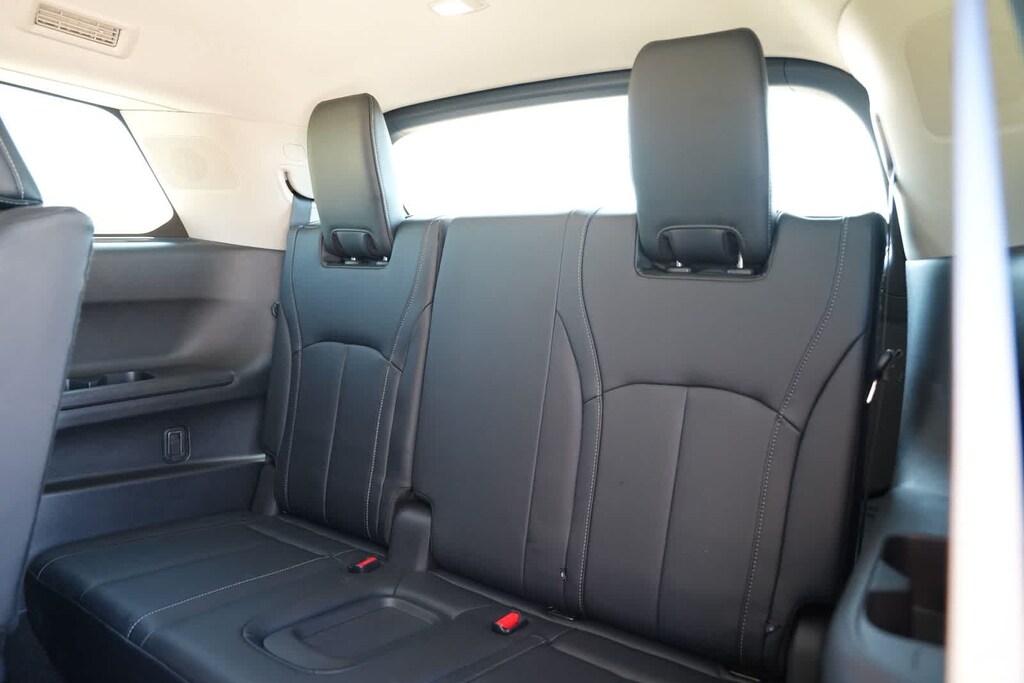 INFINITI Certified Pre-Owned Certified, 3rd row seats: bench, 4-Wheel Disc Brakes, 4.334 Axle Ratio, 9 Speakers, ABS brakes, Air Conditioning, Alloy wheels, AM/FM radio: SiriusXM, Anti-whiplash front head restraints, Auto High-beam Headlights, Auto-dimming door mirrors, Auto-dimming Rear-View mirror, Automatic temperature control, Brake assist, Bumpers: body-color, Cargo Mat (Reversible), Cargo Package, Climate-Controlled Front Bucket Seats, Delay-off headlights, Driver door bin, Driver vanity mirror, Dual front impact airbags, Dual front side impact airbags, Electronic Stability Control, Emergency communication system, First Aid Kit, Floor Mats on Bench Seats w/3rd Row Tray, Four wheel independent suspension, Front anti-roll bar, Front Bucket Seats, Front Center Armrest, Front dual zone A/C, Front reading lights, Fully automatic headlights, Garage door transmitter: HomeLink, Heated door mirrors, Heated front seats, Heated steering wheel, Illuminated entry, Knee airbag, Leather Shift Knob, Leather steering wheel, Leather-Appointed Seating Surfaces, Literature Kit, Low tire pressure warning, Memory seat, Navigation system: INFINITI InTouch Navigation, Occupant sensing airbag, Outside temperature display, Overhead airbag, Overhead console, Panic alarm, Passenger door bin, Passenger vanity mirror, Power door mirrors, Power driver seat, Power Liftgate, Power moonroof, Power passenger seat, Power steering, Power windows, Radio data system, Radio: AM/FM Audio System, Rain sensing wipers, Rear air conditioning, Rear anti-roll bar, Rear reading lights, Rear seat center armrest, Rear side impact airbag, Rear window defroster, Rear window wiper, Reclining 3rd row seat, Remote keyless entry, Security system, Speed control, Speed-sensing steering, Speed-Sensitive Wipers, Splash Guards, Split folding rear seat, Spoiler, Steering wheel memory, Steering wheel mounted audio controls, Tachometer, Telescoping steering wheel, Tilt steering wheel, Traction control, Trip computer, Turn signal indicator mirrors, Variably intermittent wipers, Ventilated front seats, Wheels: 20 x 8J Sporty Machined Aluminum Alloy.