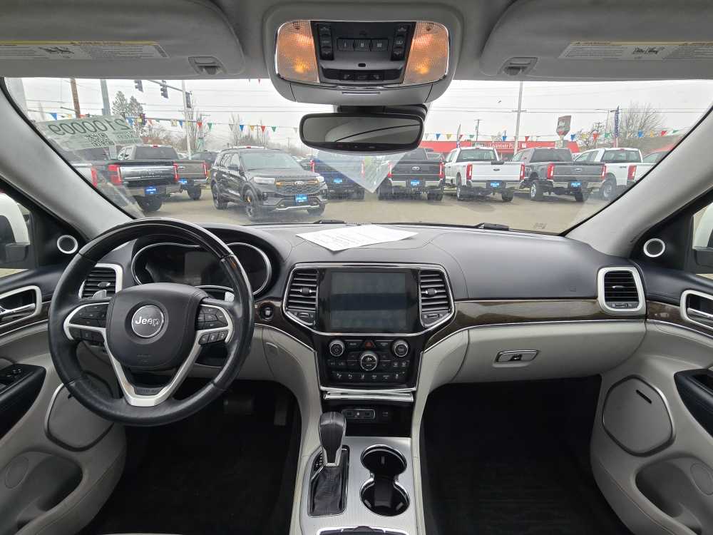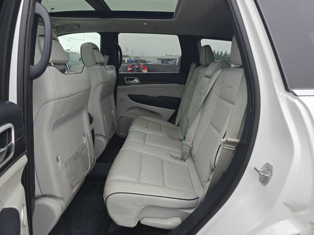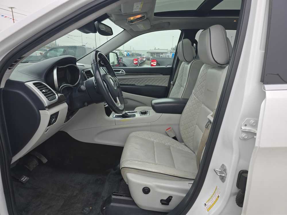 SIGNATURE LEATHER-WRAPPED INT. PKG. Leather-Wrapped Lower Panels, Adv Leather Multistage Front Air Bags, ENGINE: 5.7L HEMI VVT V8 W/FUELSAVER MDS 3.09 Rear Axle Ratio, 230MM Rear Axle, 700-Amp Maintenance-Free Battery, Electronic Limited-Slip Differential Rear Axle, HD 4-Wheel Anti-Lock Disc Brakes, Quadra-Drive II 4X4 System, GVWR: 3,084 kgs (6,800 lbs), PREMIUM PLUS APPEARANCE PACKAGE Wheels: 20 x 8 Platinum Aluminum, Gloss Black/Platinum Chrome Grille, Body Colour Sills w/Platinum Chrome, Platinum Chrome Taillamp Strip, Platinum Chrome Side Roof Rails, Body Colour Exterior Mirrors, Body Colour/Platinum Front Fascia, Platinum Chrome Exterior Badging, Platinum Day Light Opening Mouldings, Body Colour/Platinum Rear Fascia, Body-Colour Door Handles, TRANSMISSION: 8-SPEED TORQUEFLITE AUTOMATIC. 2019 Jeep Grand Cherokee with Ivory Tri-Coat Pearl exterior and Ski Grey/Indigo interior features a 8 Cylinder Engine with 360 HP at 5150 RPM*. Non-Smoker vehicle