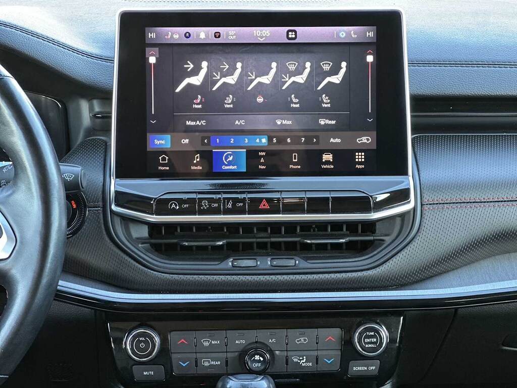 TRAILHAWK ELITE GROUP SiriusXM Radio Service, Vehicle Information Center, For Details, Visit DriveUconnect.com, Heated Front Seats, For More Info, Call 800-643-2112, Integrated Voice Command w/Bluetooth®, GPS Navigation, 4G LTE Wi-Fi Hot Spot, 2nd Row USB Type A/C Charge Only, SiriusXM w/360L, Premium LED Fog Lamps, Windshield Wiper De-Icer, LED Low/Highbeam Projector Headlamps, Connected Travel & Traffic Services, 2nd Row Heated Seats, Alexa Built-In, Power 8-Way Adjust Front Passenger Seat, Radio: Uconnect 5 Nav w/10.1 Display, Remote Start System, Reversible Carpet/Vinyl Cargo Mat, SiriusXM Satellite Radio, HD Radio, Premium Taillamps, SiriusXM Guardian - Included Trial (B), Foot Activated Open N Go Liftgate, Leather Wrapped Steering Wheel, 115V Auxiliary Power Outlet, No Satellite, TRANSMISSION: 9-SPEED 948TE AUTOMATIC (STD), ENGINE: 2.4L I4 ZERO EVAP M-AIR W/ESS (STD). Jeep Trailhawk with Bright White Clearcoat exterior and Ruby Red/Black interior features a 4 Cylinder Engine with 177 HP at 6400 RPM*.